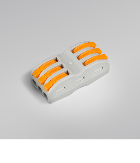 Фиксация Благодаря рычажковому механизму зачищенные провода легко вставляются и фиксируются в клемме.