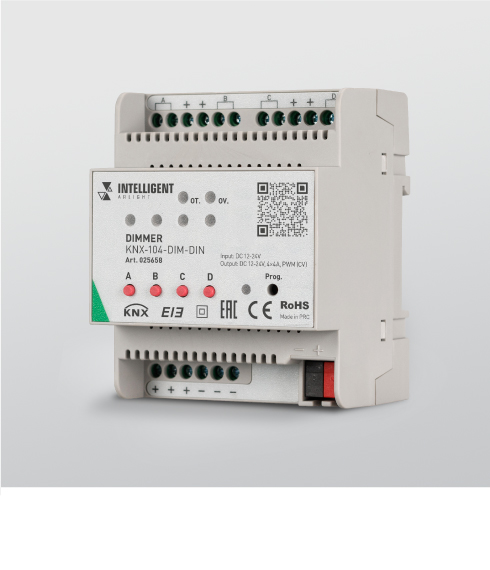 Диммеры, использующие стандартный цифровой протокол KNX, предназначены для управления многоцветными (RGBW) и одноцветными светодиодными лентами и другими светодиодными источниками света с питанием постоянным напряжением, которые поддерживают управление ШИМ (PWM).