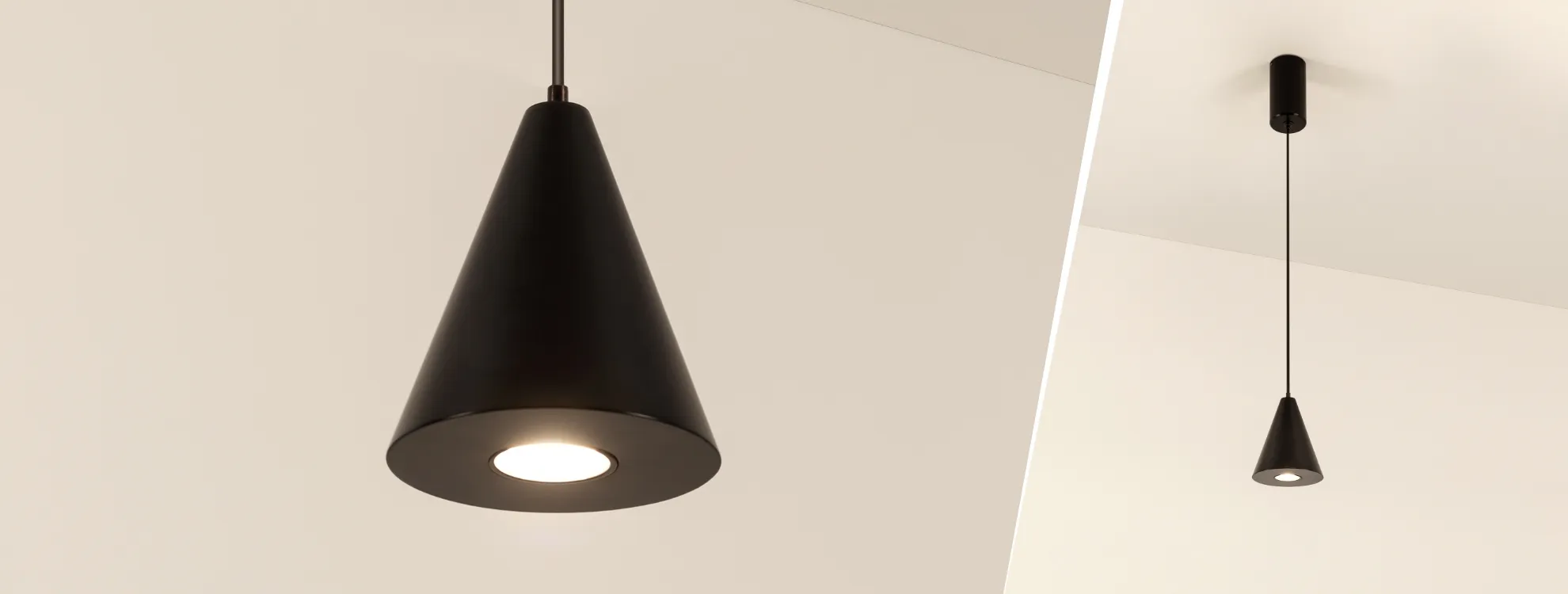 Токопроводящий подвес длиной 1500 мм можно регулировать и создавать оригинальные многоуровневые композиции. Для создания одной подвесной композиции будет достаточно трех разных по форме светильников.