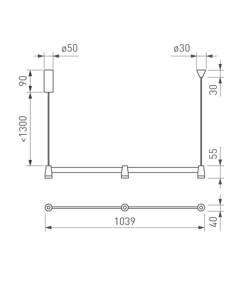Установка Длина подвеса 1300 мм с возможностью регулировки. Драйвер для подключения к сети 230 В в комплекте.