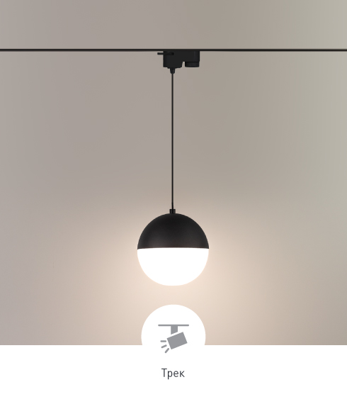 Диаметр светового модуля: 150, 200 мм. Мощность светильников 11, 16 Вт. Имеются модели для подвесного монтажа на потолок (без трека).