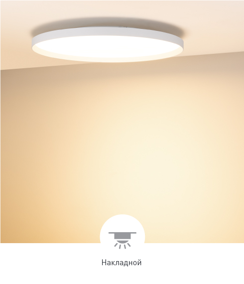 Гибкость в выборе модели В серии представлены следующие варианты размеров световой части светильника: Ø350×70 мм, Ø450×70 мм, Ø600×73 мм, Ø800×73 мм.