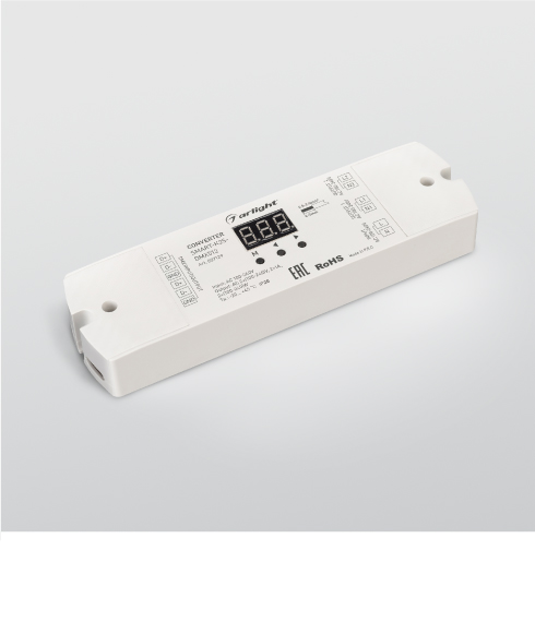 Конвертеры предназначены для управления яркостью, включением и отключением источников света с напряжением питания AC 230 В (светодиодных диммируемых ламп, диммируемых светодиодных светильников, ламп накаливания, галогенных ламп) посредством протокола управления DMX512. Диммирование выполняется с использованием метода TRIAC.