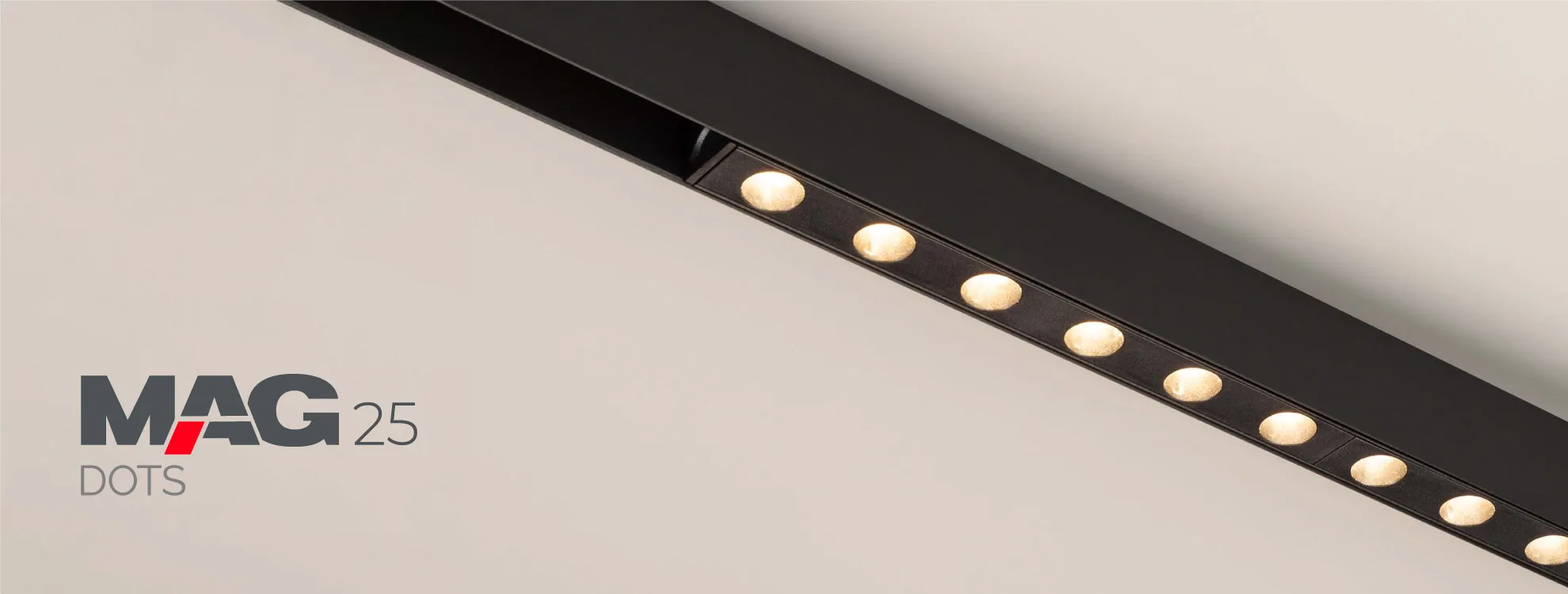 Миниатюрная, изящная магнитная система MAG-25 с безопасным напряжением 24 В. Оптика светильников создана со светодиодами Lumileds и Bridgelux, благодаря чему качество света остается на высоком уровне (индекс цветопередачи CRI>90). Большой выбор светильников дает возможность адаптировать трековые системы для любых пространств — от уютных квартир до модных шоурумов.