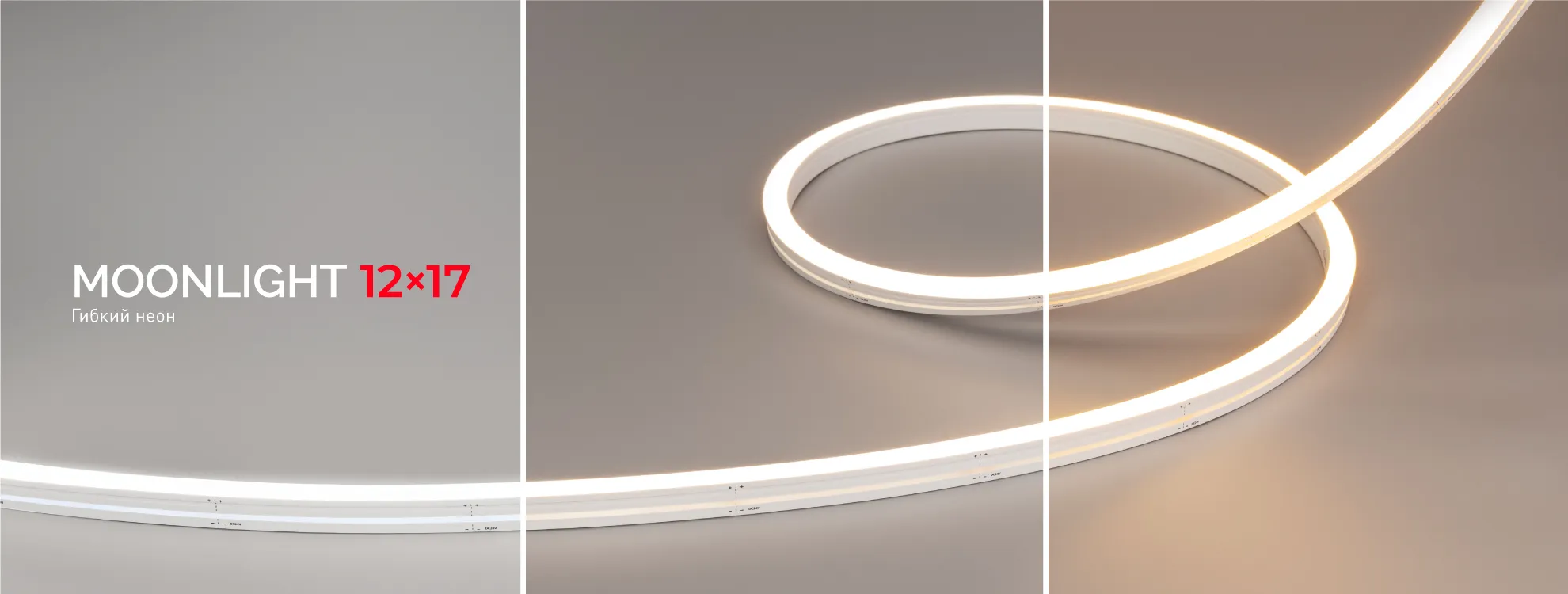 Гибкий неон MOONLIGHT с сечением 12×17 мм обладает высокой степенью пылевлагозащиты (IP67) и предназначен для создания уличной рекламы, декоративного и дополнительного освещения мостов и фасадов зданий.