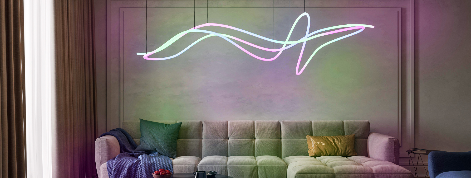 Множество аксессуаров За счет большого выбора подвесов, креплений и держателей можно создавать различные фигуры на основе гибкого неона (аксессуары приобретаются отдельно).