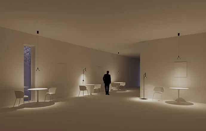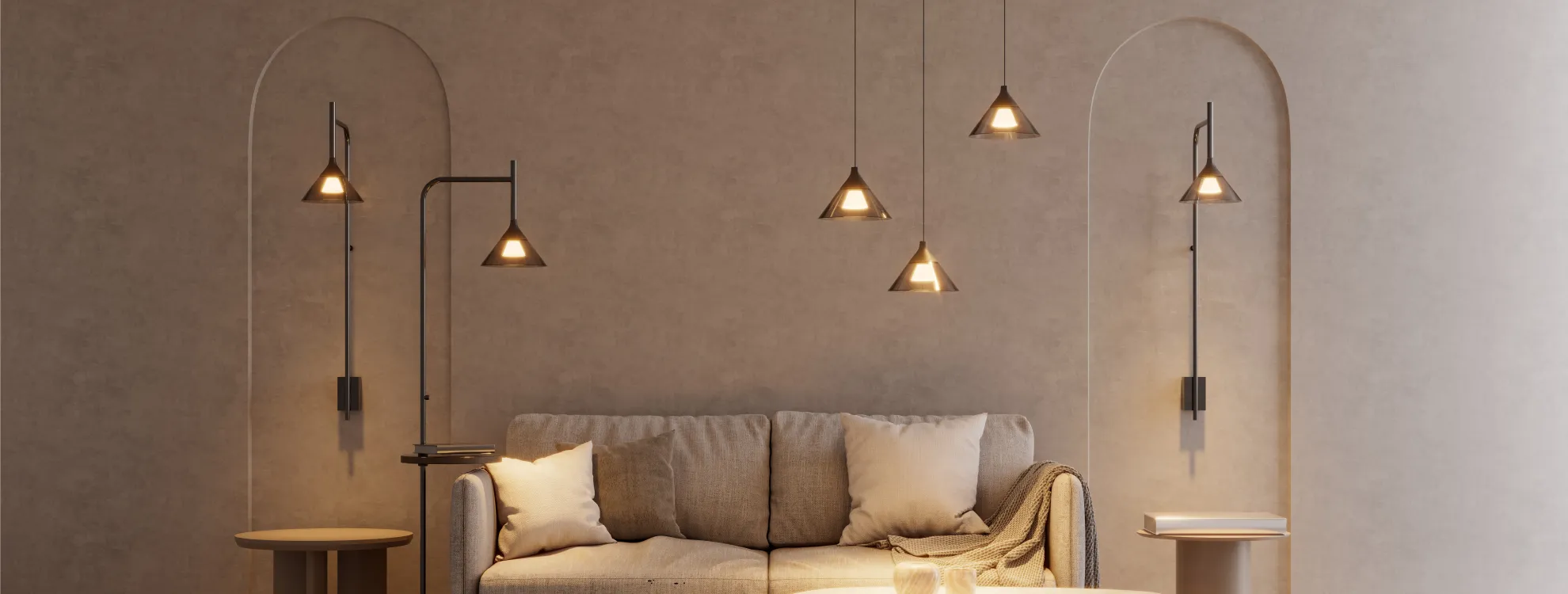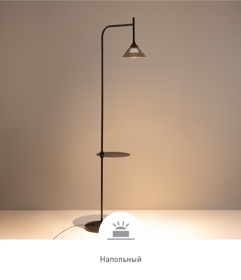 Разнообразие В серии представлены следующие виды светильников: подвесные с возможностью ручной регулировки высоты, напольные со столиком-подставкой, на котором располагается сенсорная кнопка для включения, выключения и изменения яркости света, и настенные, оснащенные накладной базой.