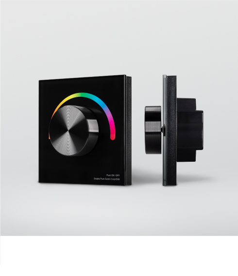 Накладные роторные панели предназначены для управления по ШИМ одноцветными, мультибелыми и мультицветными светодиодными лентами или другими источниками света с помощью стильного вращающегося регулятора.