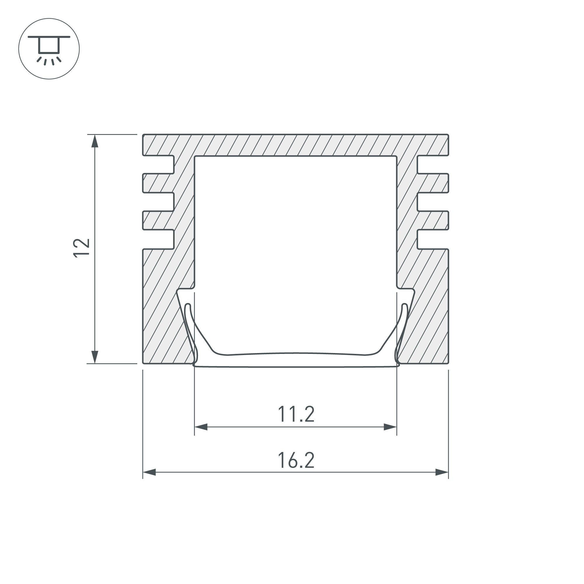 Алюминиевый анодированный профиль для светодиодных лент и линеек. Габаритные размеры (L×W×H): 2000x16x12 мм. Ширина площадки для ленты 11,2 мм. Экраны, заглушки и другие аксессуары приобретаются отдельно. Цена за 1 метр.