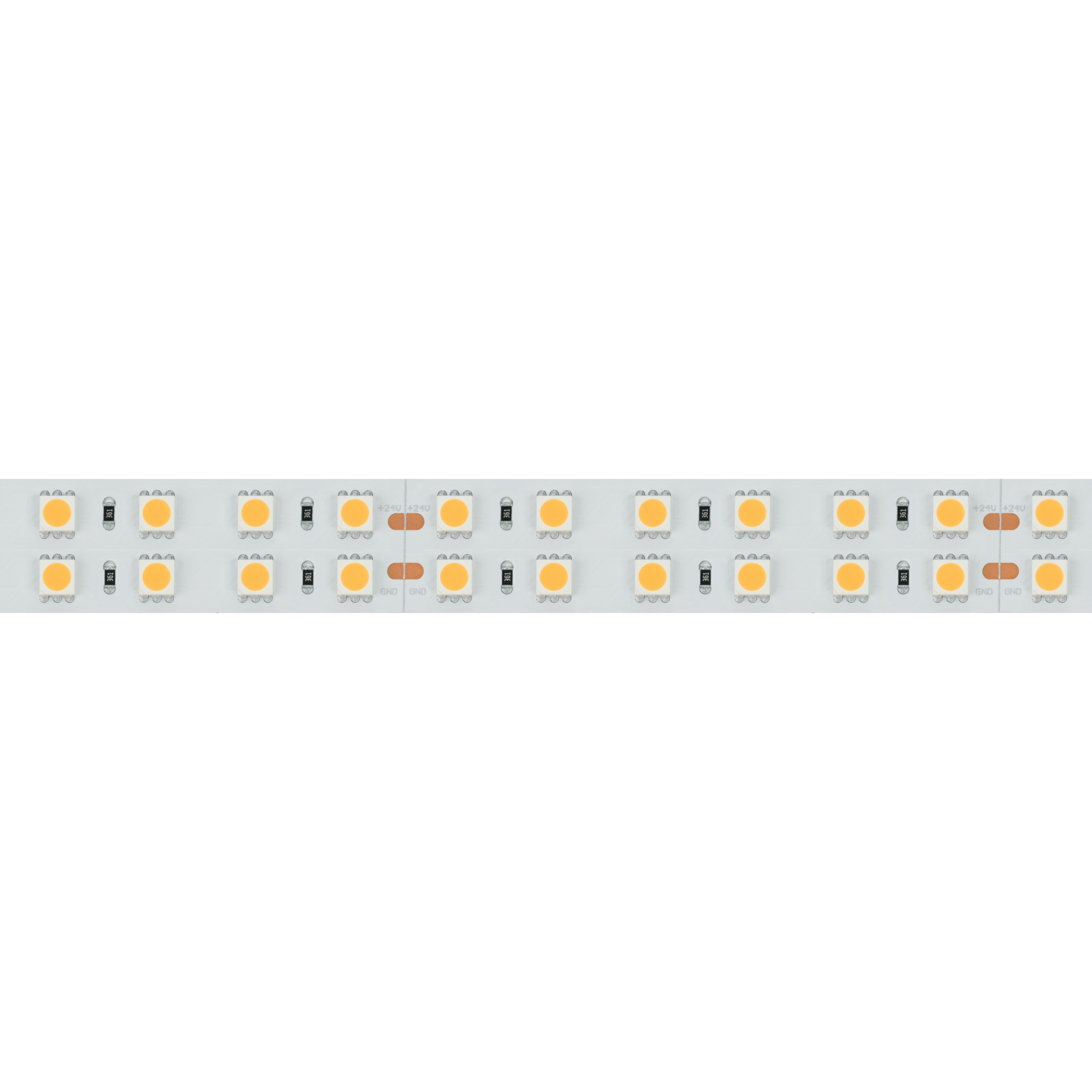 Широкая двухрядная лента LUX шириной 19 мм с индексом цветопередачи CRI>85. Светодиоды SMD 5060 (144 шт/м) с теплым белым цветом свечения (2600–2800 К). Мощность 34.4 Вт/м, напряжение питания 24 В. Минимальный отрезок 83.33 мм (12 светодиодов). Декоративная подсветка интерьеров, потолочных ниш, рабочих зон кухни, мебели. Встроенные линии света для основного освещения. Создание накладных и подвесных светильников из алюминиевого профиля. Обязательна установка на алюминиевый профиль.