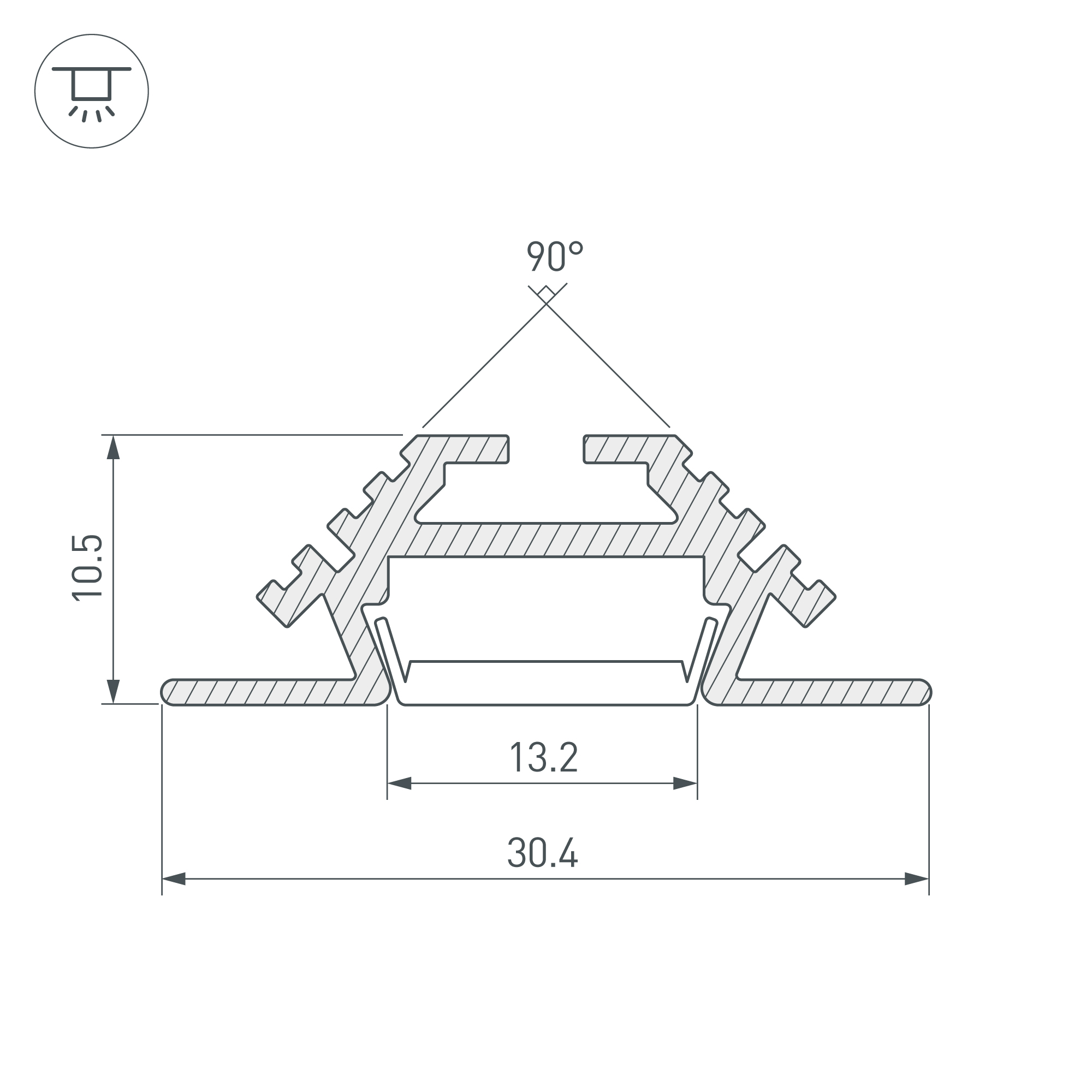 Угловой профиль с фланцем из анодированного алюминия для подсветки мебели, ниш и других элементов интерьера. Габаритные размеры профиля составляют 2000 мм в длину, 30,4 мм в ширину и 10,5 мм в высоту. Площадка для установки светодиодных лент позволяет использовать ленту шириной до 13,2 мм и мощностью до 18,3 Вт/м. Это обеспечивает гибкость в выборе светодиодных лент и создает потрясающие световые решения.