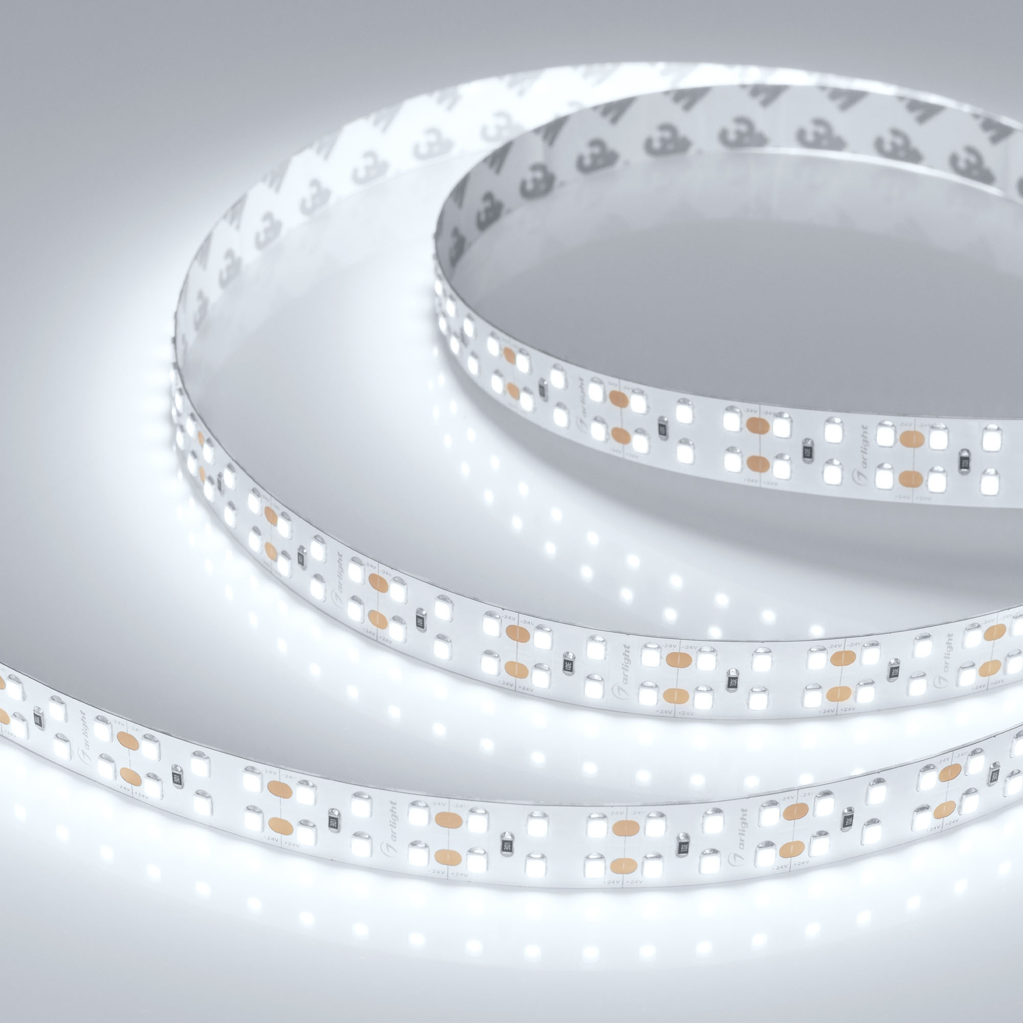 Широкая светодиодная лента RT серии A240 шириной 15 мм, мощностью 19.2 Вт/м. Светодиоды SMD 2835, 240 шт/м, холодного цвета свечения (8000K). Напряжение питания 24 В. Минимальный отрезок 25 мм (6 светодиодов). Предназначена для основного освещения, создания накладных и подвесных светильников из алюминиевого профиля.