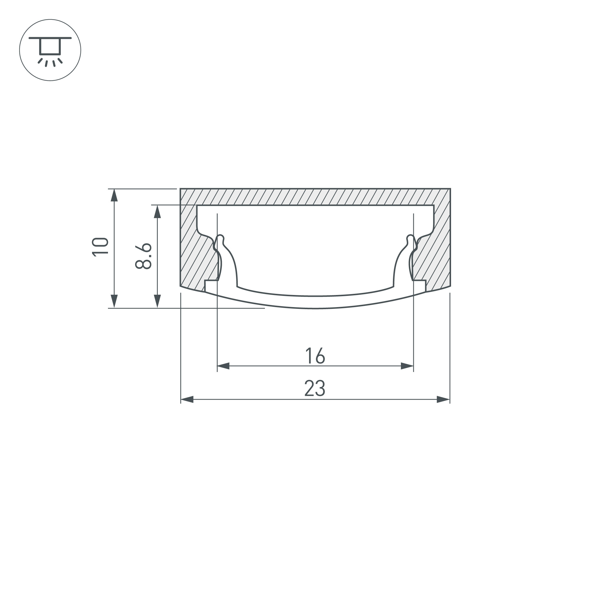 Габаритные размеры профиля составляют 2000 мм в длину, 22,6 мм в ширину и 8,5 мм в высоту. Площадка для установки светодиодных лент позволяет использовать ленту шириной до 20 мм и мощностью до 17,1 Вт/м. Это обеспечивает гибкость в выборе светодиодных лент и создает потрясающие световые решения.