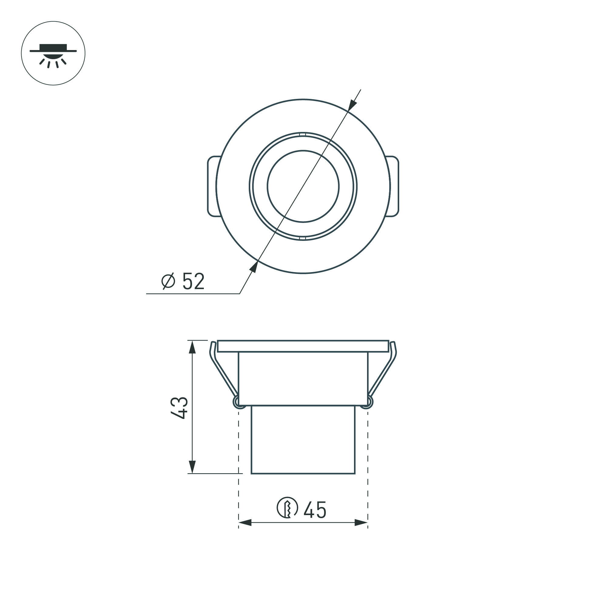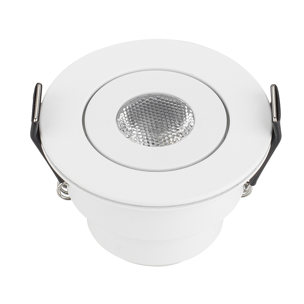 Компактный врезной мебельный светильник LTM-R52WH 3W Day White 30deg мощностью 3 Вт, с дневным белым цветом свечения (4000–4500 К) для встраивания в мебель, гипсокартонные конструкции и другие поверхности в жилых и общественных помещениях. Светильник с узким углом излучения 30°, световым потоком 140–160 лм и индексом цветопередачи CRI>80. Легко монтируется в установочное отверстие диаметром 45 мм с помощью пружин. Драйвер для подключения поставляется в комплекте. Возможна регулировка яркости после замены штатного драйвера на диммируемый.