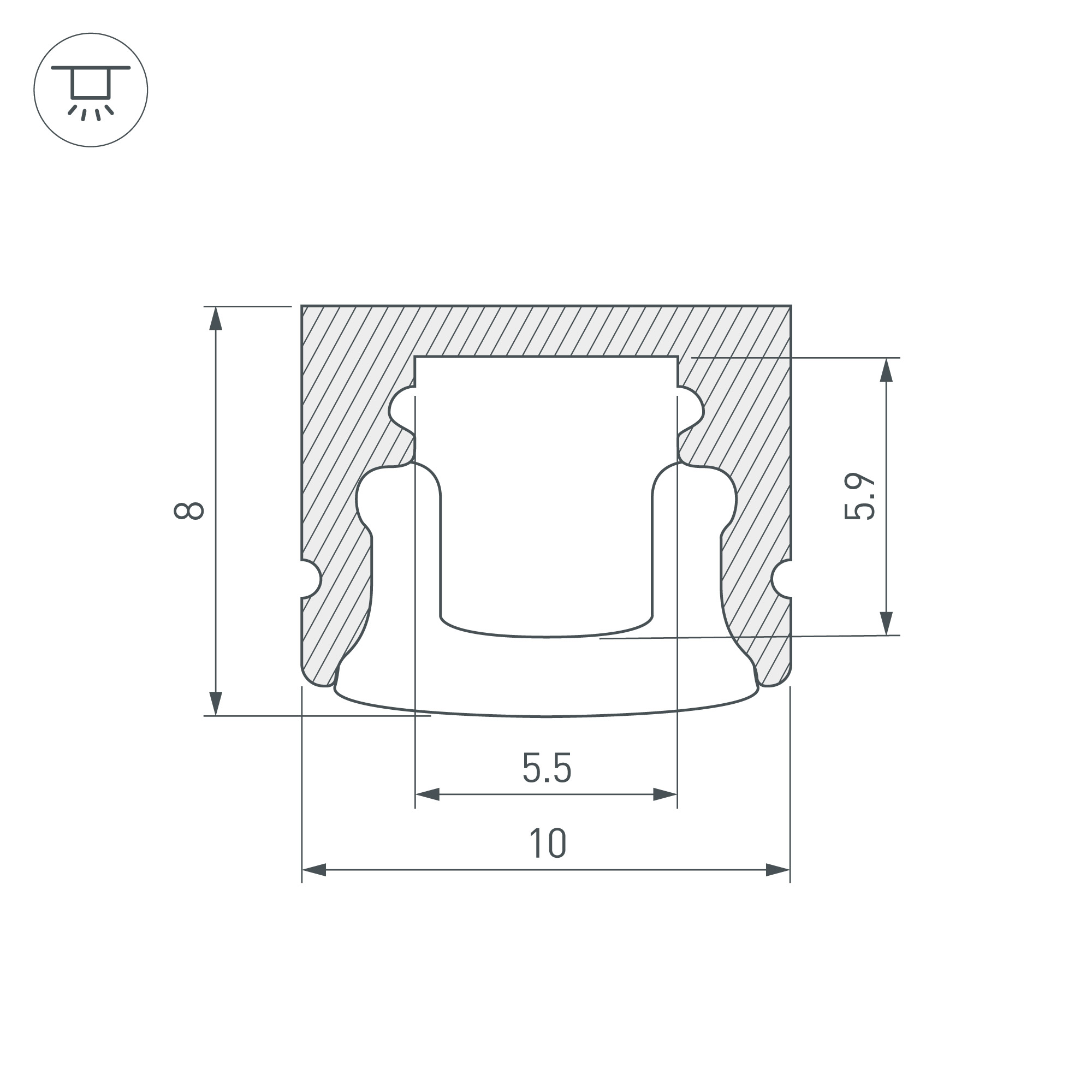 Алюминиевый анодированный микро-профиль для узких лент и линеек 5 мм. Габаритные размеры (L×W×H): 2000x10x8 мм. Ширина площадки для ленты 5,5 мм. Экраны, заглушки и другие аксессуары приобретаются отдельно. Цена за 1 метр.