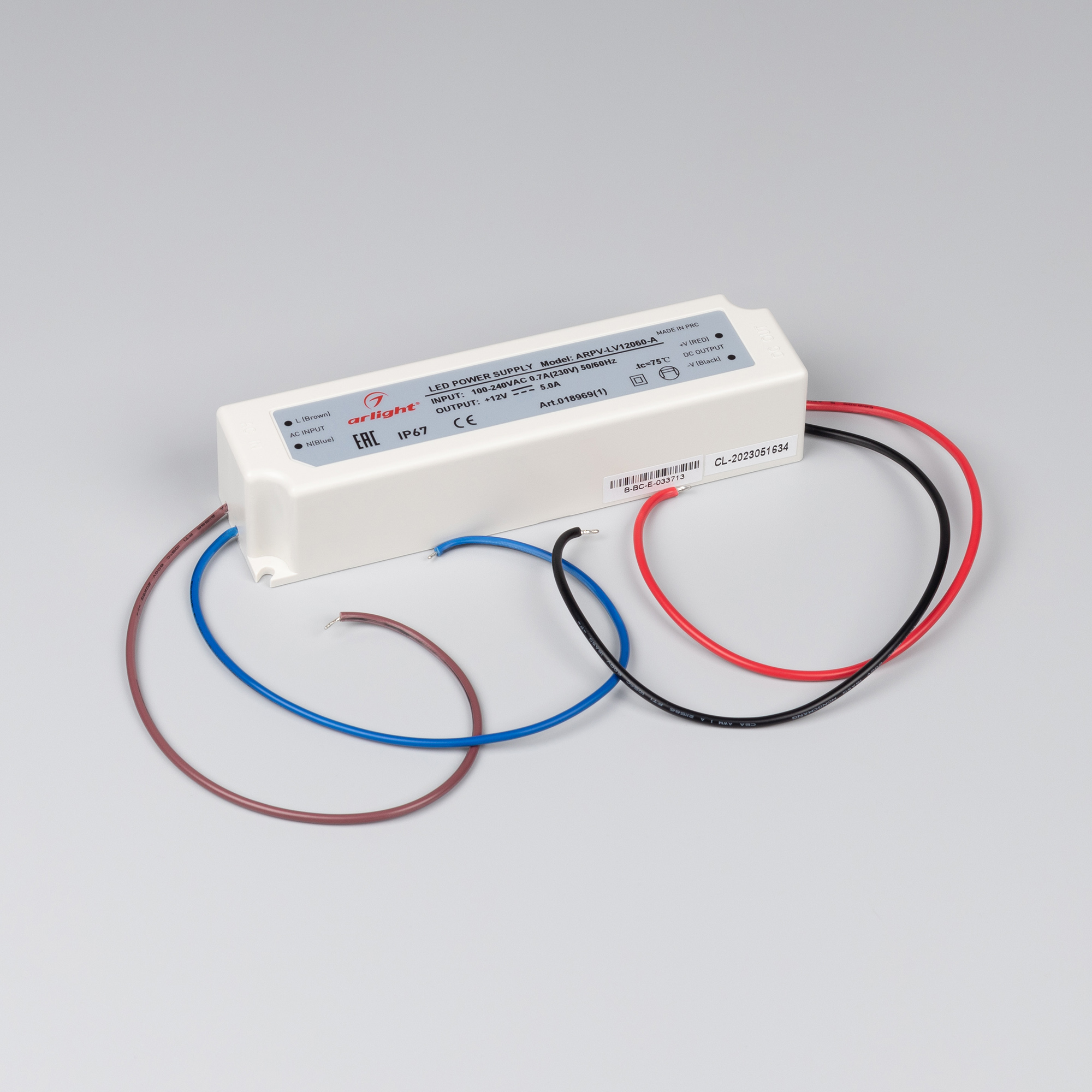 Источник напряжения с гальванической развязкой для светодиодных изделий. Входное напряжение 100 - 240 VAC. Выходные параметры: 12 В, 5 А, 60 Вт. Герметичный пластиковый корпус IP 67. Рабочая температура -30…+70C⁰. Габаритные размеры длина 162 мм, ширина 43 мм, высота 32 мм. Гарантийный срок 3 года.