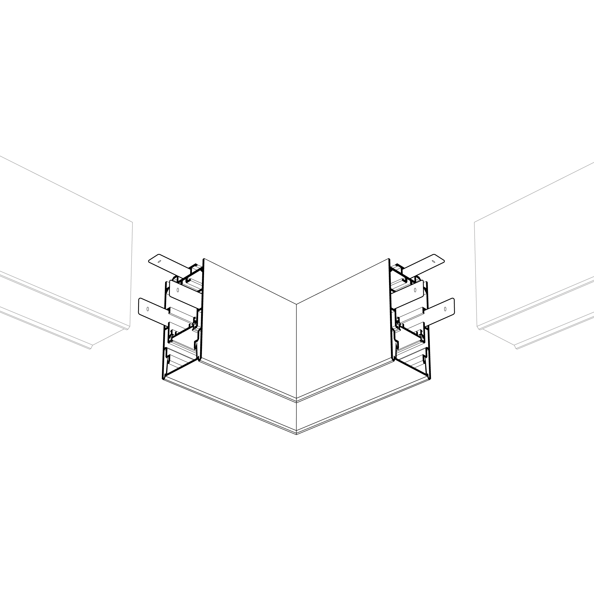 Прямой угол в сборе для соединения двух профилей S2-LINE-3360 под прямым углом 90° в одной плоскости в комплекте с матовым экраном, площадкой для ленты и соединителями. Экран образует линию на плоскости. Применятся при изготовлении светильников сложной геометрии.