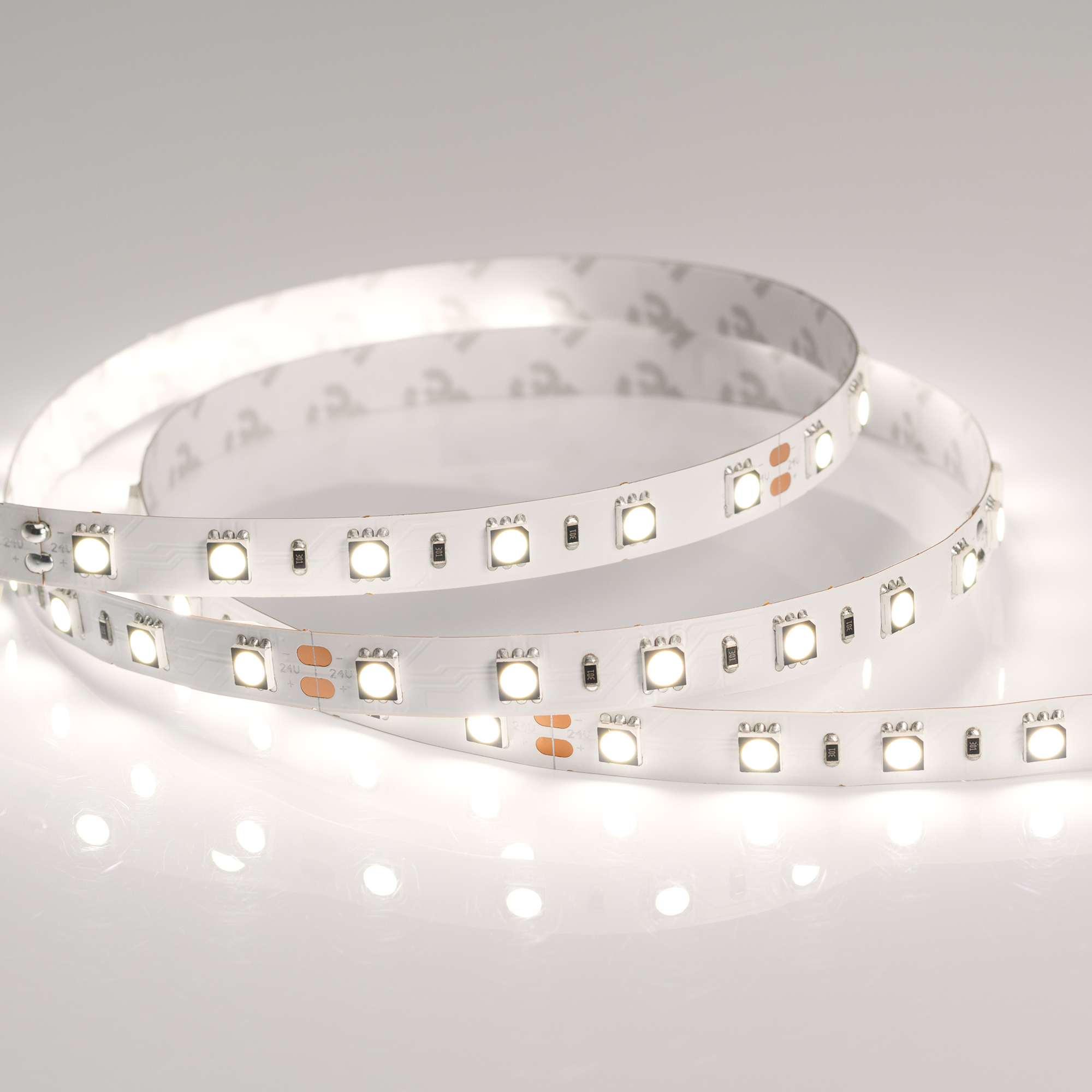 CRI98, гибкая лента LUX, светодиоды smd 5060, 60шт/м (300шт на 5м), белая плата 10мм, скотч 3М. Цвет ДНЕВНОЙ 3800-4200K. Питание 24V, мощность 14.4 Вт/м (72 Вт на 5м), угол 120°, очень высокая цветопередача CRI 95..98. Размеры 5000х10x2.2мм. Мин.отрезок 100мм, 6 светодиодов. Цена за 1м.
