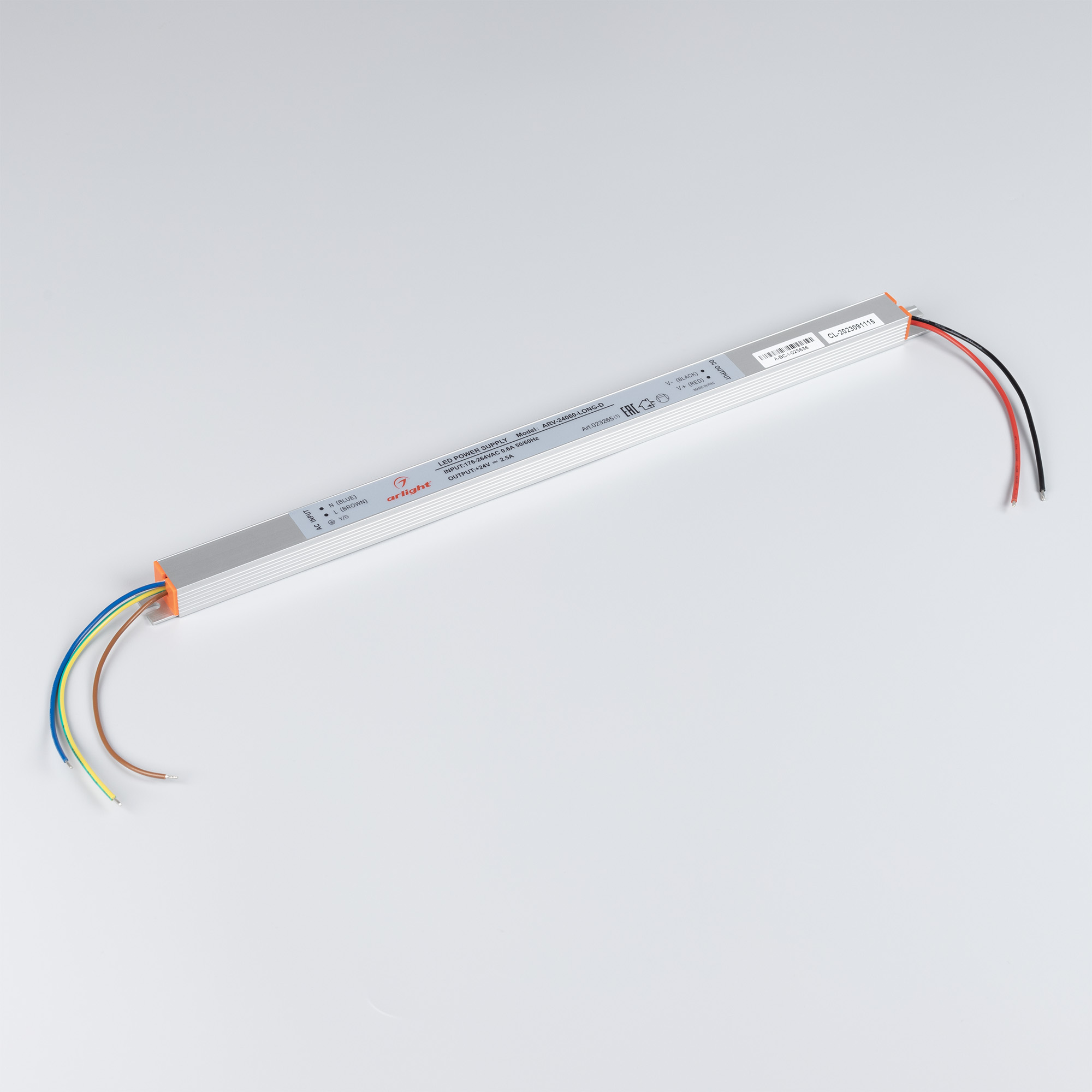 Источник напряжения с гальванической развязкой для светодиодных изделий. Входное напряжение 200-240 VAC. Выходные параметры: 24 В, 2.5 А, 60 Вт. Негерметичный алюминиевый корпус IP 20. Габаритные размеры длина 365 мм, ширина 18 мм, высота 15 мм. Предназначен для лайтбоксов. Гарантийный срок 2 года.