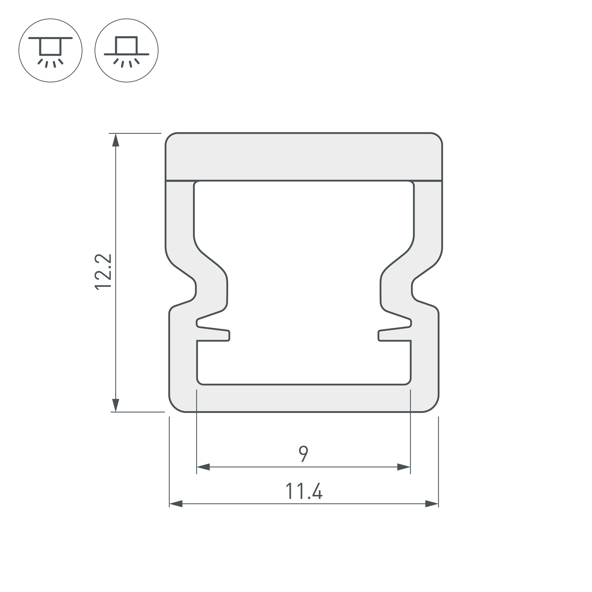 Цельнолитой профиль из поликарбоната со встроенным матовым экраном. Габаритные размеры профиля составляют 2000 мм в длину, 11,4 мм в ширину и 12,2 мм в высоту. Площадка для установки светодиодных лент позволяет использовать ленту шириной до 6 мм и мощностью до 9,4 Вт/м. Это обеспечивает гибкость в выборе светодиодных лент и создает потрясающие световые решения. Для установки во влажных помещениях необходима герметизация при помощи двухкомпонентного эпоксидного герметика. Класс пылевлагозащиты – IP65 (при соблюдении технологии герметизации). Этот продукт представляет отличное решение для создания современных световых проектов и обеспечивает надежную и стильную основу для установки светодиодов.