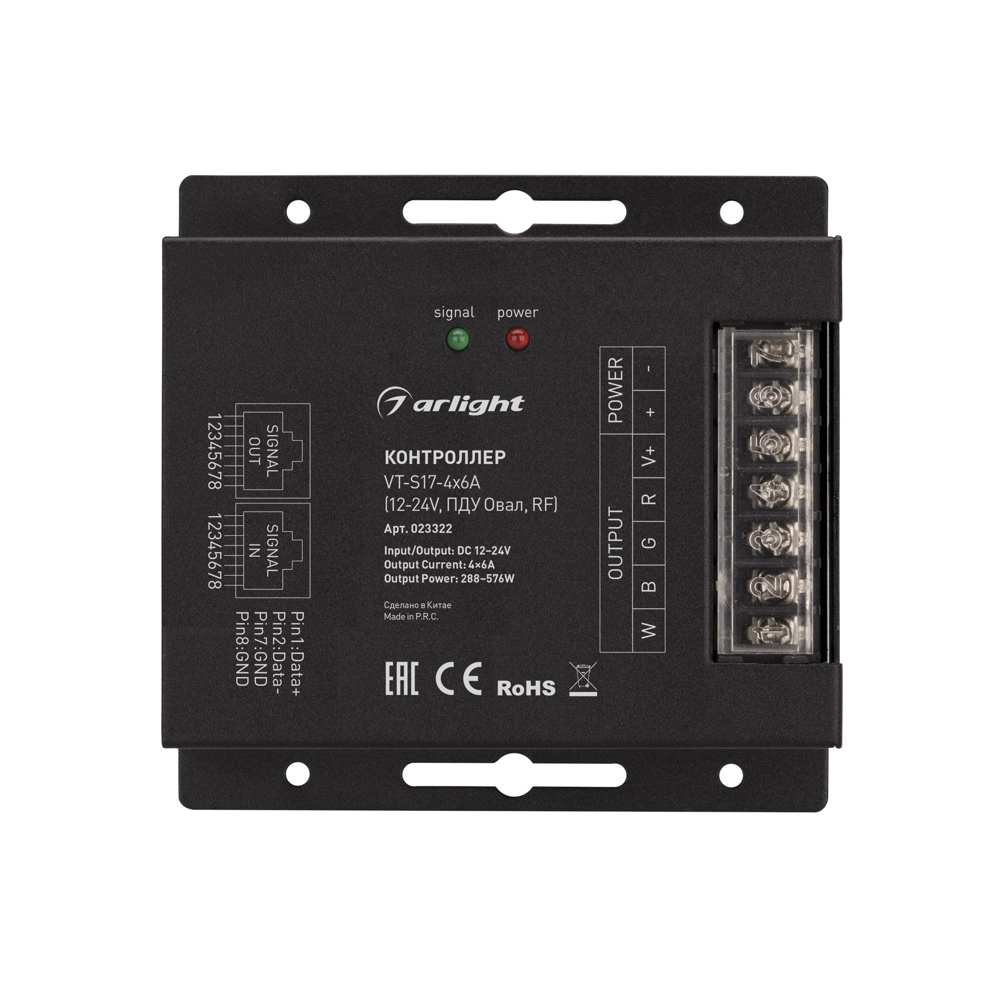 Комплект: 4-канальный диммер с радиопультом черного цвета с сенсорным кольцом, для управления мультицветными RGB и RGBW светодиодными лентами. Этот комплект устройств позволит легко и удобно регулировать цвет, яркость освещения и осуществлять включение и выключение света. Питание диммера имеет диапазон напряжений от 12В до 24В, максимальный ток 6А на 1 канал, максимальная мощность 288-576Вт (в зависимости от напряжения питания). Диммер имеет порты RJ45 для возможности проводного соединения устройств между собой и синхронизации их работы. При потере питания диммера последнее состояние яркости и цвета сохраняется. Питание пульта осуществляется от 3-х батареек ААА. Габариты диммера составляют 91x88x27мм, габариты пульта составляют 114х56х23мм.