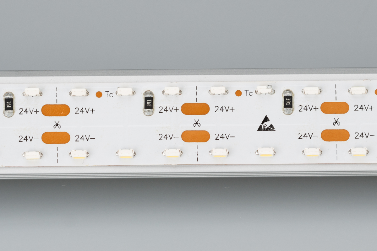 Двухрядная лента бокового свечения шириной 15 мм. Светодиоды SMD 3014 (240 шт/м) дневного белого цвета свечения (3900–4250 К) с индексом цветопередачи CRI>80. Светодиоды светят в плоскости ленты в обе стороны. Нестандартные решения для подсветки мебели, стеклянных полок, декора. Создает контурное свечение с двух сторон при установке на стенки рекламных знаков, букв. Мощность 19.2 Вт/м, напряжение питания 24 В. Минимальный отрезок 25 мм (6 светодиодов).