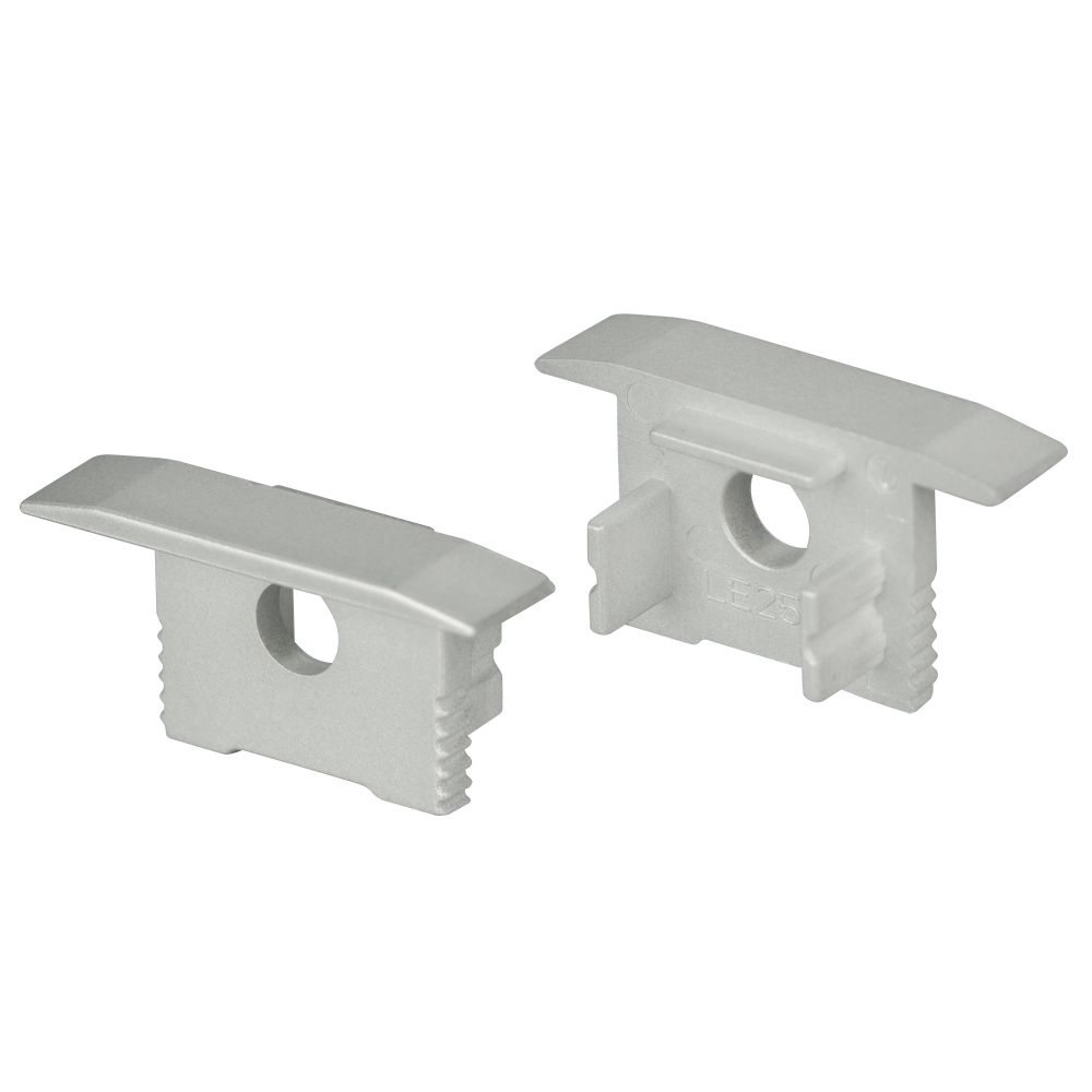 Заглушки (2 шт.) с отверстием для профиля SL-SLIM-H13M-F25. Придают законченный вид светильнику, а также защищают светодиодную ленту от внешних факторов (грязи, пыли и прочего). Отверстие в заглушке позволяет вывести кабель питания светодиодной ленты.