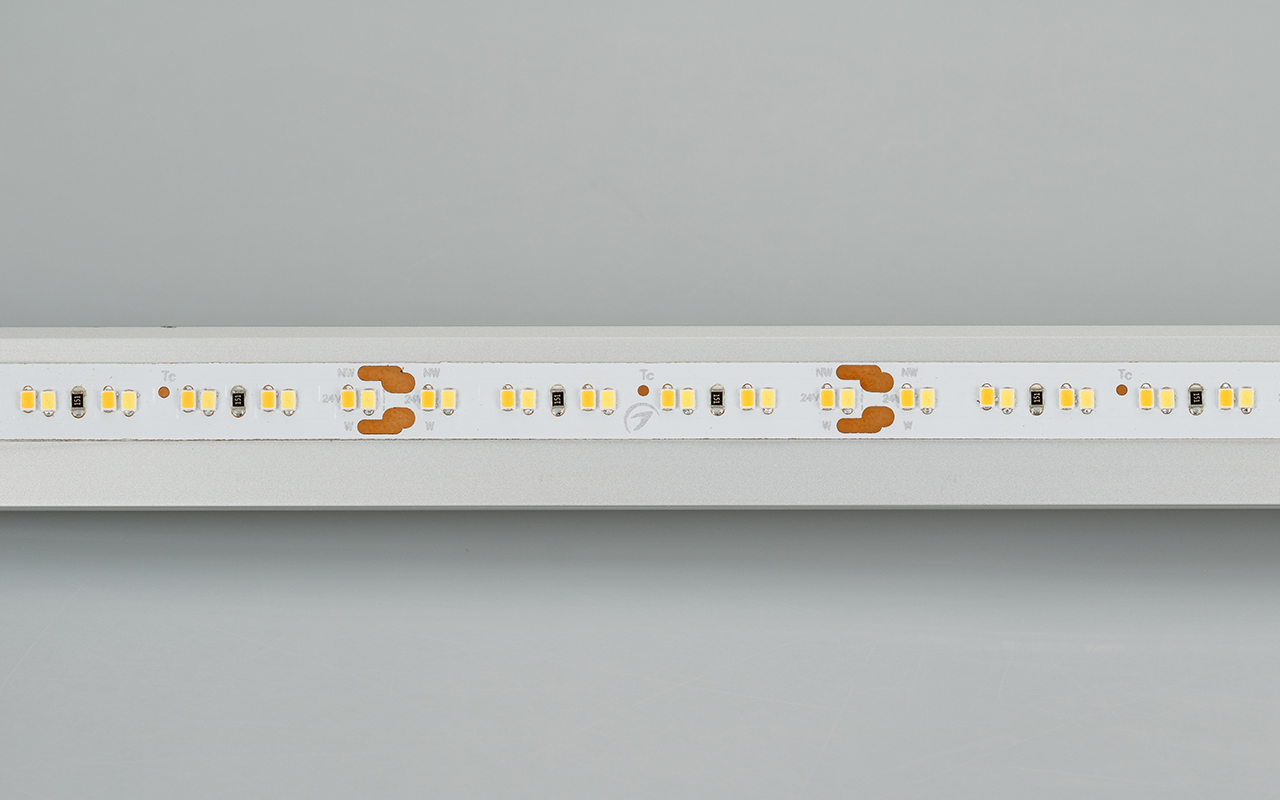 Биполярная узкая лента LUX шириной 8 мм с изменяемым цветом свечения: белым (6000 К) и теплым белым (2700 К). Светодиоды SMD 2216 (240 шт/м) с высоким индексом цветопередачи (CRI>90). Мощность 9.6 Вт/м, напряжение питания 24 В. Сниженное энергопотребление. Минимальный отрезок 50 мм (12 светодиодов). Рекомендована для освещения детских комнат, выставочных площадей, торговых залов и других помещений, где важно передать цветовые нюансы. Подходит для основного освещения и декоративной подсветки.
