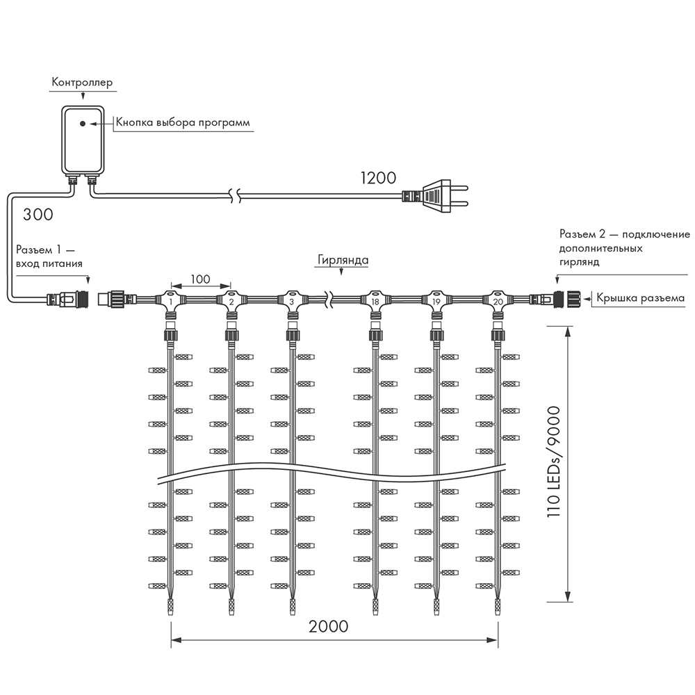 Светодиодный "Занавес ВОДОПАД" серии CLASSIC идеально подходит для украшения и создания праздничной атмосферы как внутри помещений, так и снаружи (степень пылевлагозащиты IP65 позволяет размещать гирлянду на улице под навесом). Имея размеры 2000 x 9000 мм, она может использоваться для оформления средних и больших площадей. Универсальные соединительные разъемы позволяют соединять до двух гирлянд без использования дополнительных аксессуаров. Прозрачная вогнутая линза и эффект "Водопад" обеспечивают яркое и динамичное освещение, выделяя украшаемые объекты. Тёплый белый свет помогают создать необходимую атмосферу для декоративного объекта. Провод прозрачный изготовлен из ПВХ. Аксессуары для подключения гирлянды к сети приобретаются отдельно.