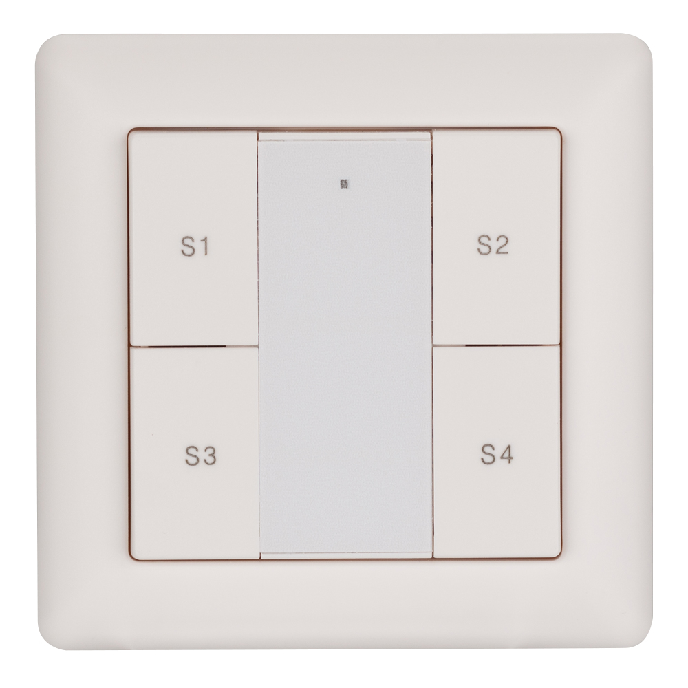 Встраиваемая пластиковая панель белого цвета с кнопочным управлением, предназначенная для включения и выключения световых сцен в системах управления светом DALI. Позволяет включать/выключать световые сцены в одной группе или для всех подключенных исполнительных устройств (Broadcast). Установка номера группы и сцен выполняется переключателями на задней стороне панели. Поддерживает управление 4 сценами. Устройство совместимо с диммерами стандарта DALI. Передача команд от панели к диммерам выполняется по общей двухпроводной шине DALI. Удобное и точное управление при помощи отдельных механических кнопок для каждой функции. Питание от шины DALI. Габариты устройства составляют 81х81х22.5 мм, установка в стандартную монтажную коробку. Панель совместима с декоративными рамками ведущих мировых производителей (GIRA, JUNG, BERKER, MERTEN). Стандартная рамка входит в комплект поставки.