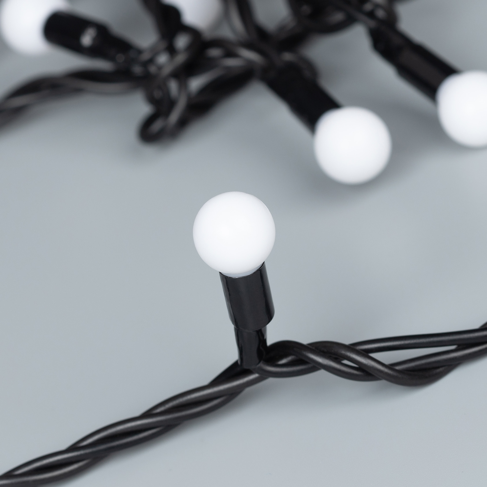 Универсальная светодиодная гирлянда "ШАРИКИ" серии Classic, предназначенная для декорирования и создания праздничного настроения как внутри помещений, так и снаружи (степень пылевлагозащиты IP65 позволяет размещать гирлянду на улице под навесом). Имея длину 20000 мм, она может использоваться для оформления средних и больших площадей. Универсальные соединительные разъемы позволяют наращивать длину до 200 м без использования дополнительных аксессуаров. Выпуклая молочно-белая линза размером 13 мм и эффект непрерывного свечения обеспечивают мягкое, равномерное освещение, выделяя украшаемые объекты. Синий свет помогает создать необходимую атмосферу для декоративного объекта. Провод изготовлен из ПВХ и окрашен в чёрный цвет. Аксессуары для подключения приобретаются отдельно.