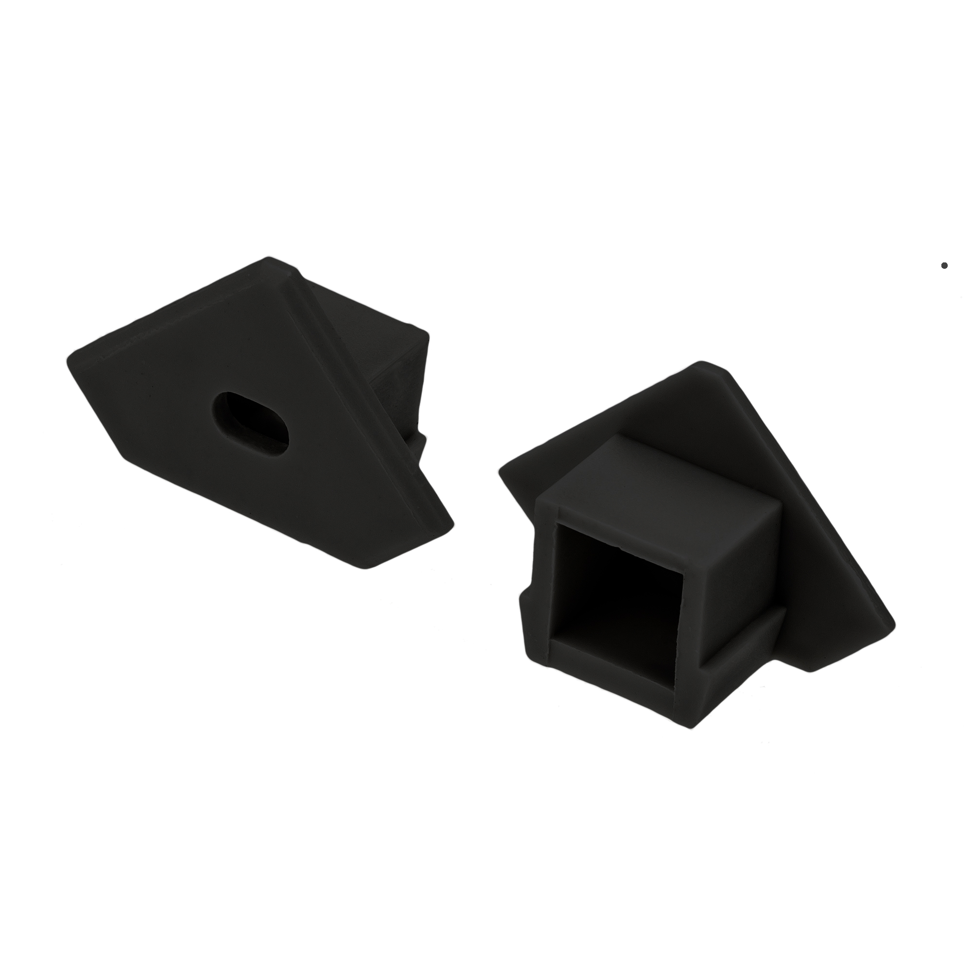 Черная заглушка с отверстием для углового профиля PDS45-T. Придает законченный вид светильнику, а также защищает светодиодную ленту от внешних факторов (грязи, пыли и прочего). Отверстие в заглушке позволяет вывести кабель питания светодиодной ленты.