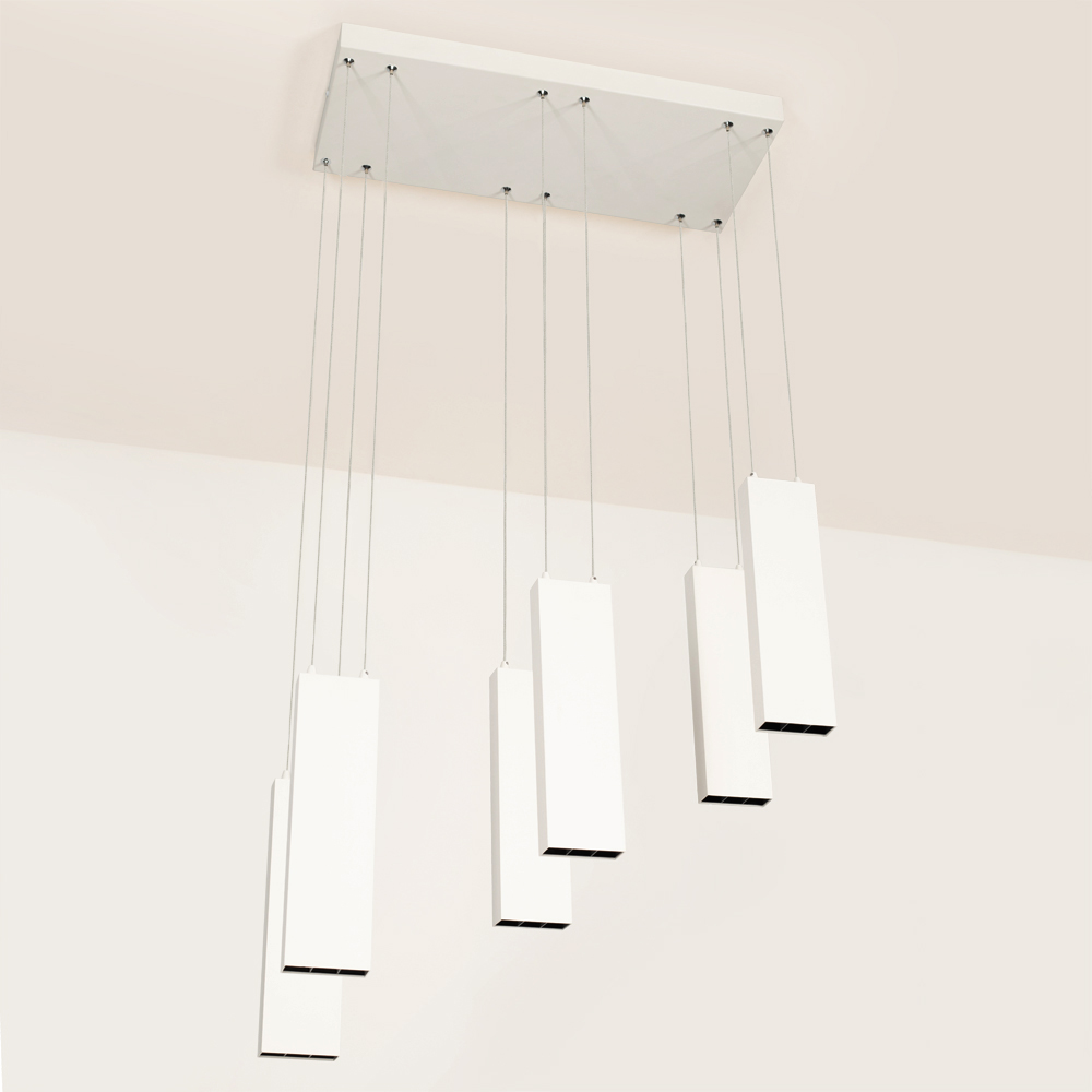 Подвесной линейный светильник SP-LEGACY-S585×250-6×6W Warm3000 (WH, 34 deg) мощностью 36 Вт с теплым белым цветом свечения (3000 K), индексом цветопередачи CRI>80 и световым потоком 2400 лм для акцентного и декоративного освещения. Оригинальный дизайн светильника в сочетании с узким углом излучения 34° подходит для локального освещения любых интерьеров. Подвес светильника регулируется от 10 до 1200 мм с учетом высоты чаши. Драйвер поставляется в комплекте и обеспечивает быстрое и безопасное подключение к сети 230 В. Предназначен для организации акцентной и декоративной подсветки в торговых, офисных и жилых помещениях. Является не только источником света, но и оригинальным дизайнерским объектом.