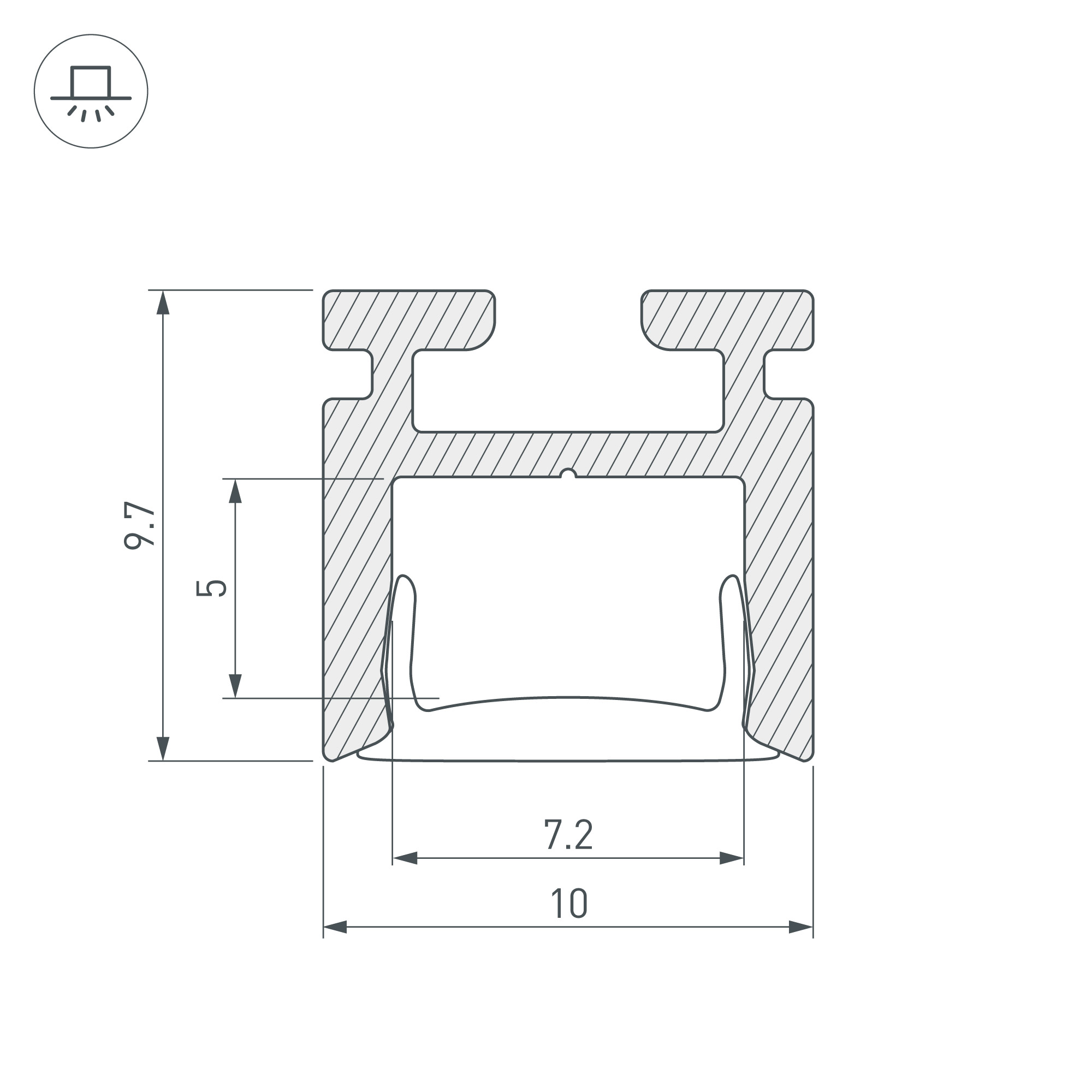 Накладной/подвесной/встраиваемый мини-профиль из анодированного алюминия для подсветки мебели, пазов, ниш и других элементов интерьера. Габаритные размеры профиля составляют 2000 мм в длину, 10 мм в ширину и 9,7 мм в высоту. Площадка для установки светодиодных лент позволяет использовать ленту шириной до 7,2 мм и мощностью до 10 Вт/м. Это обеспечивает гибкость в выборе светодиодных лент и создает потрясающие световые решения. Экраны, заглушки, профиль-держатель TEK-PIK-1010 и другие аксессуары не включены в комплект и приобретаются отдельно. Цена указана за 1 метр профиля. Отличное решение для создания современных световых проектов.