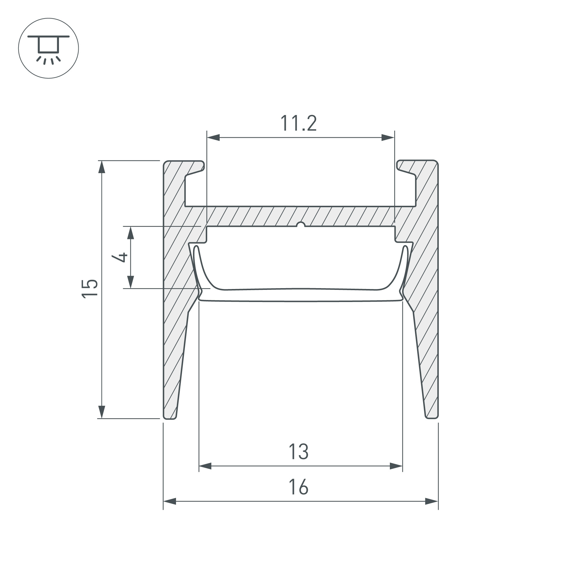 Накладной профиль черного цвета из анодированного алюминия для подсветки мебели, пазов, ниш и других элементов интерьера. Экран утоплен в плоскости профиля, что позволяет скрыть источник света от прямого контакта с глазами. Габаритные размеры профиля составляют 2000 мм в длину, 16 мм в ширину и 15 мм в высоту. Площадка для установки светодиодных лент позволяет использовать ленту шириной до 11,2 мм и мощностью до 12 Вт/м. Это обеспечивает гибкость в выборе светодиодных лент и создает потрясающие световые решения.