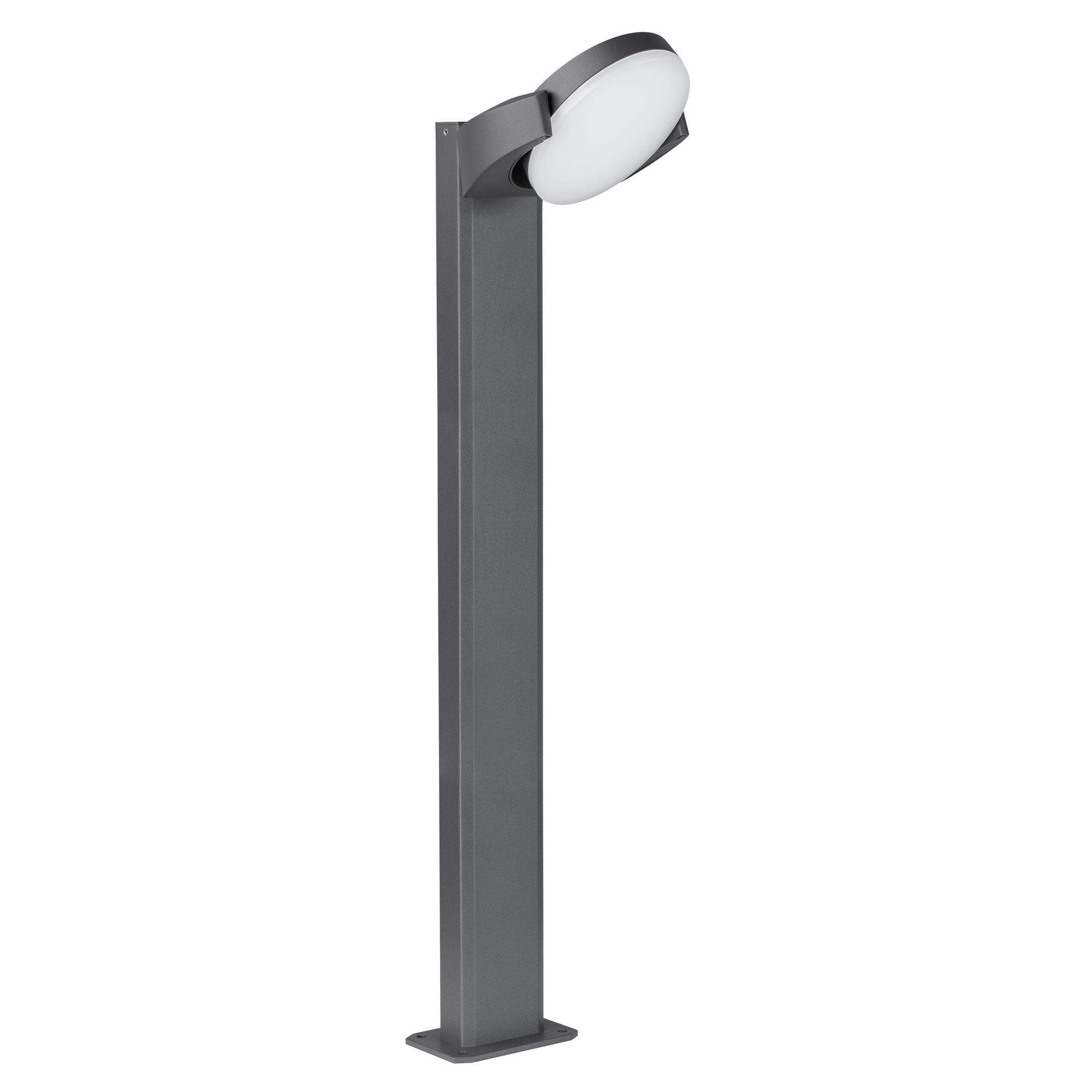 900мм уличный светодиодный светильник с поворотной оптической частью (угол поворота 40°) для подсветки дорожек. Цвет ТЕПЛЫЙ БЕЛЫЙ 3000К, 6Вт (615лм). Влагозащищенный корпус IP54 - серый алюминий, экран из поликарбоната. Питание 230В, мощность 6Вт. Размеры ДхШхВ 248х151х900 мм.