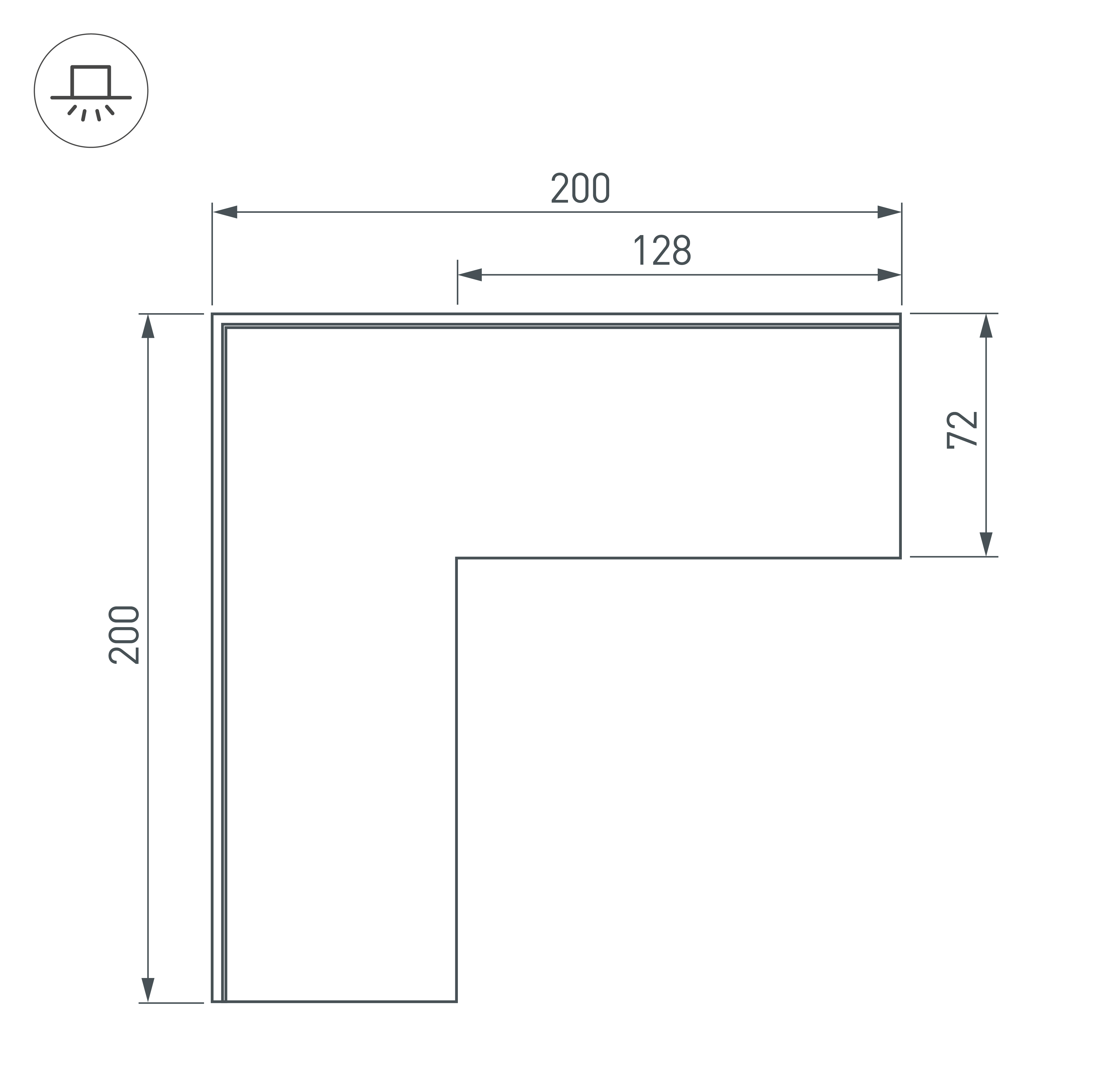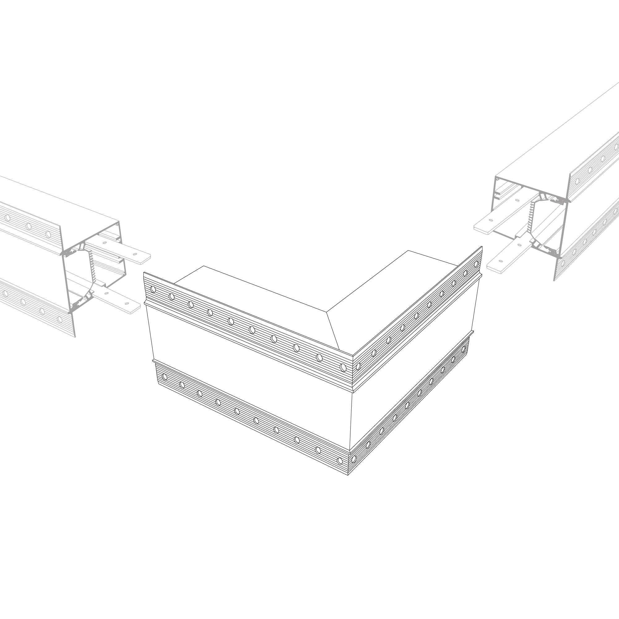 Внешний прямой угол в сборе со скрытым фланцем под строительную отделку для соединения двух профилей SL-LINIA55-FANTOM под прямым углом 90° в разных плоскостях в комплекте с матовым экраном и соединителями. Экран образует линию по внешней стороне угла. Применятся при изготовлении светильников сложной геометрии.