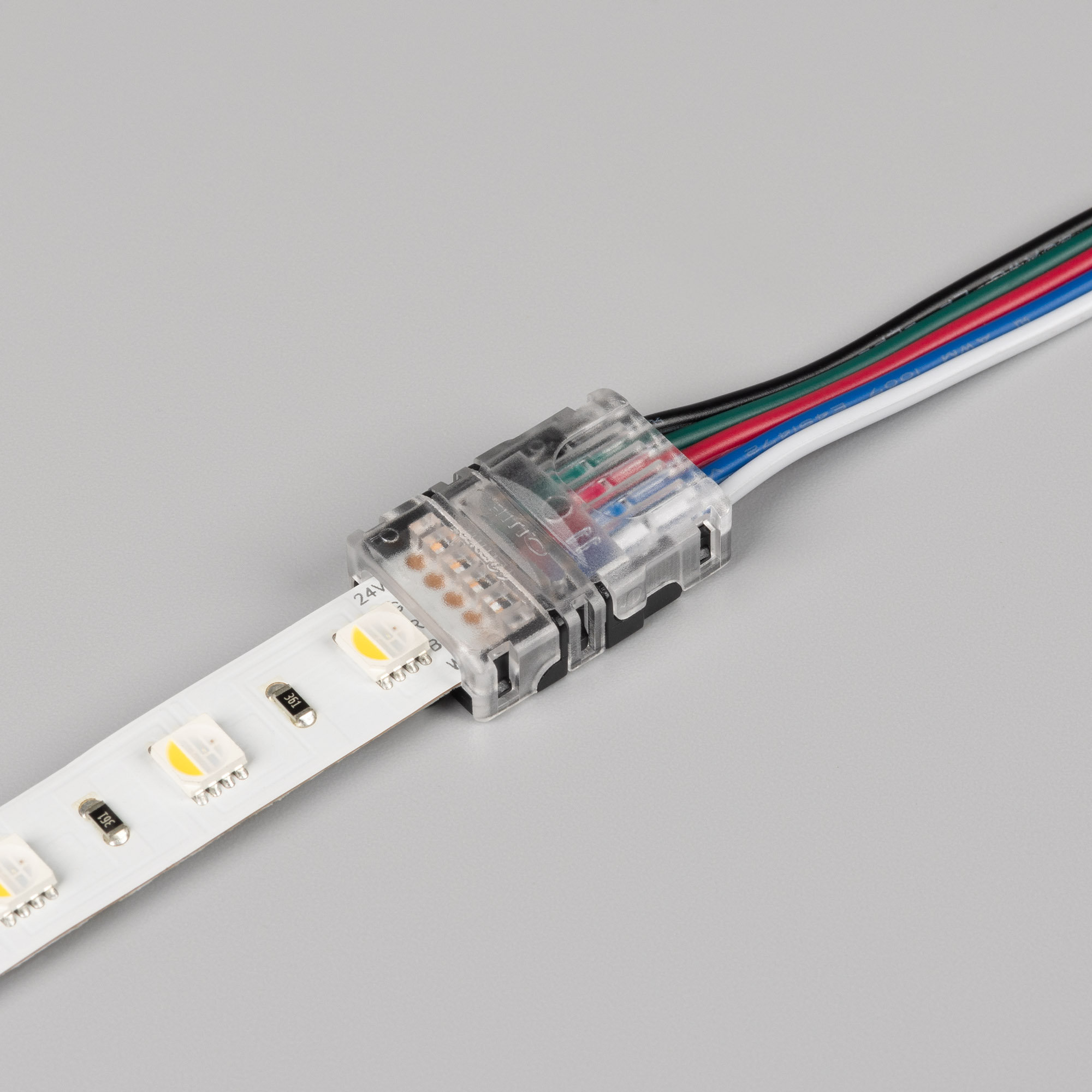 Для подключения питания к открытым лентам RGBW шириной 12 мм без необходимости очистки провода от изоляции.