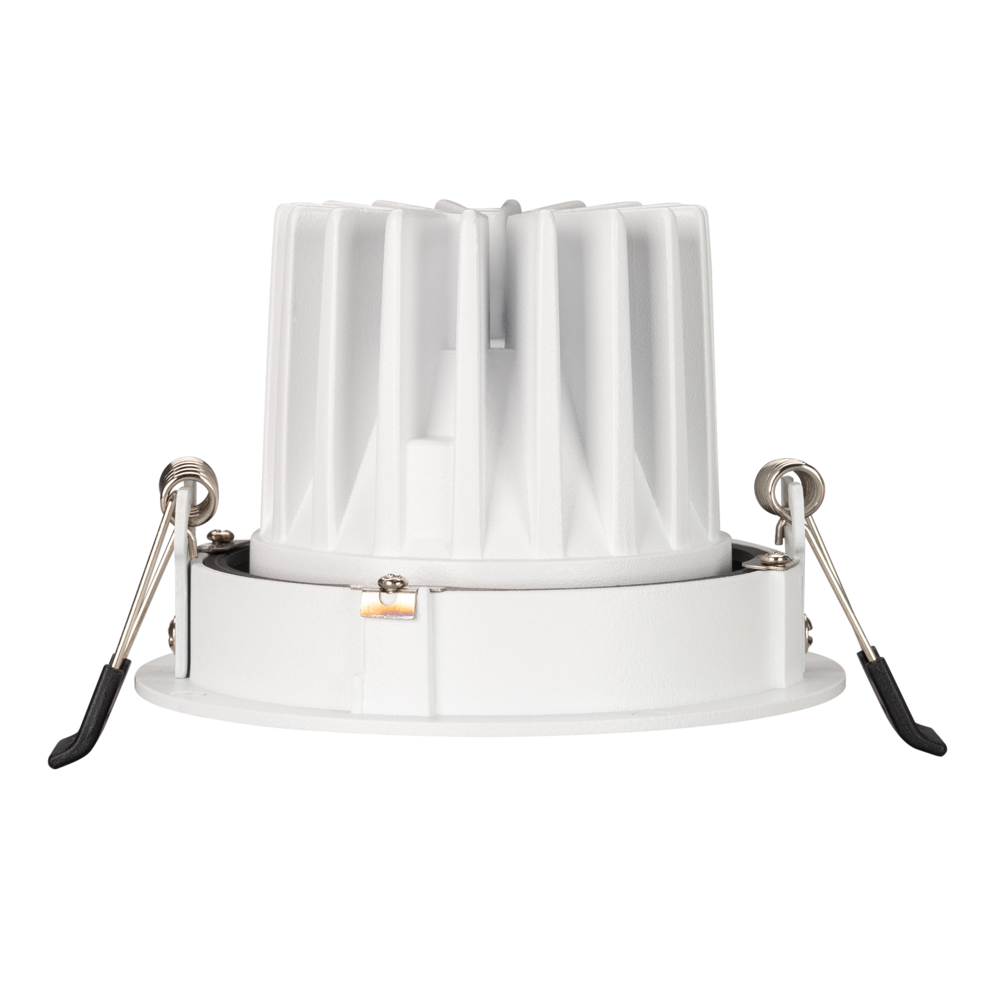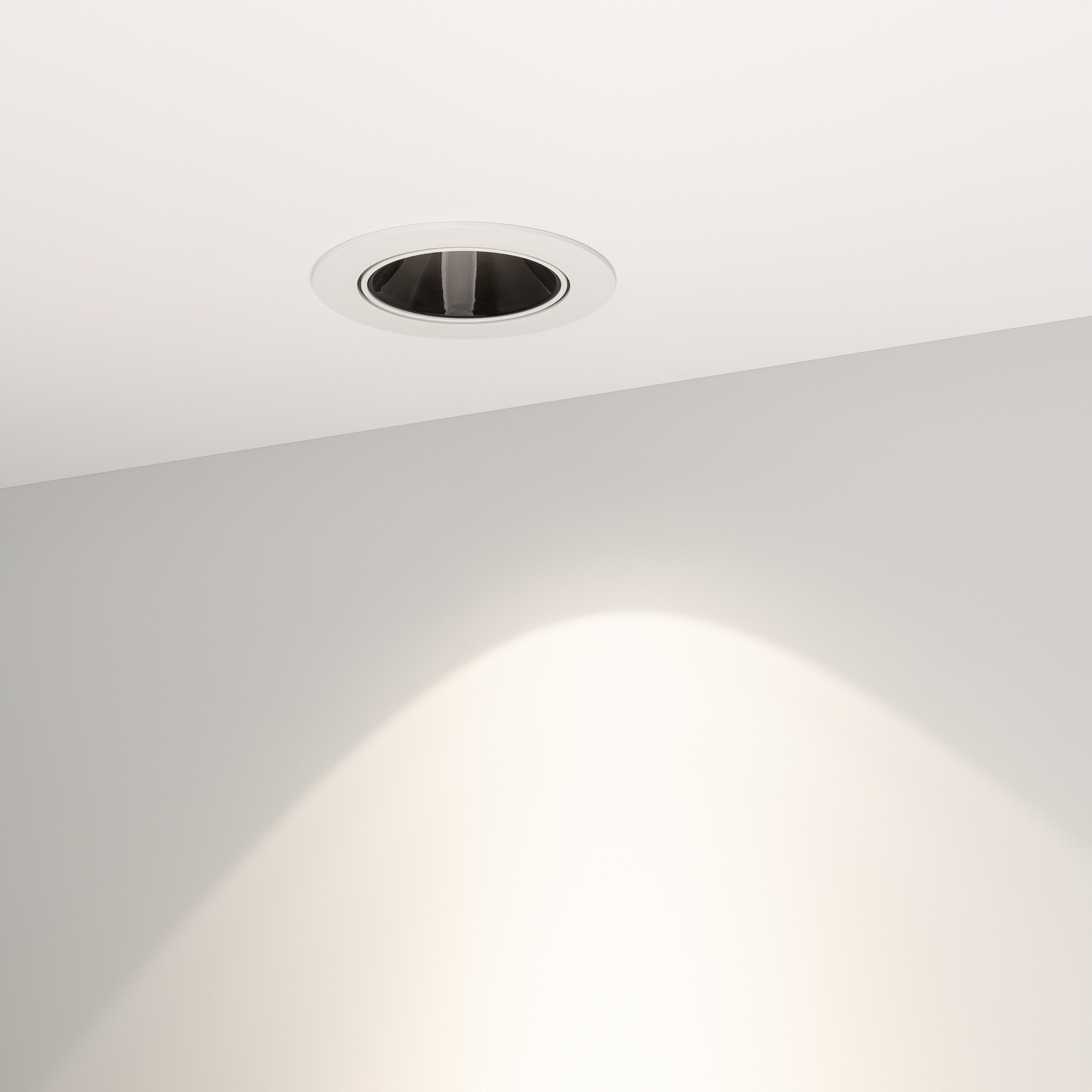 Встраиваемый поворотный светильник даунлайт. Мощность 12 Вт,св. поток 910 лм, 76 лм/Вт, дневной 4000 K, CRI>90, UGR<16, угол 32°, напряжение питания 230 В. Белый круглый корпус из алюминия, черный ГЛЯНЦЕВЫЙ отражатель из PMMA, степень защиты IP20. Размер: диаметр 102 мм, высота 70 мм. Монтаж встраиваемый, установочное отверстие: диаметр 95 мм. Драйвер 20-40 В, 300 мА, пульсация <2%.