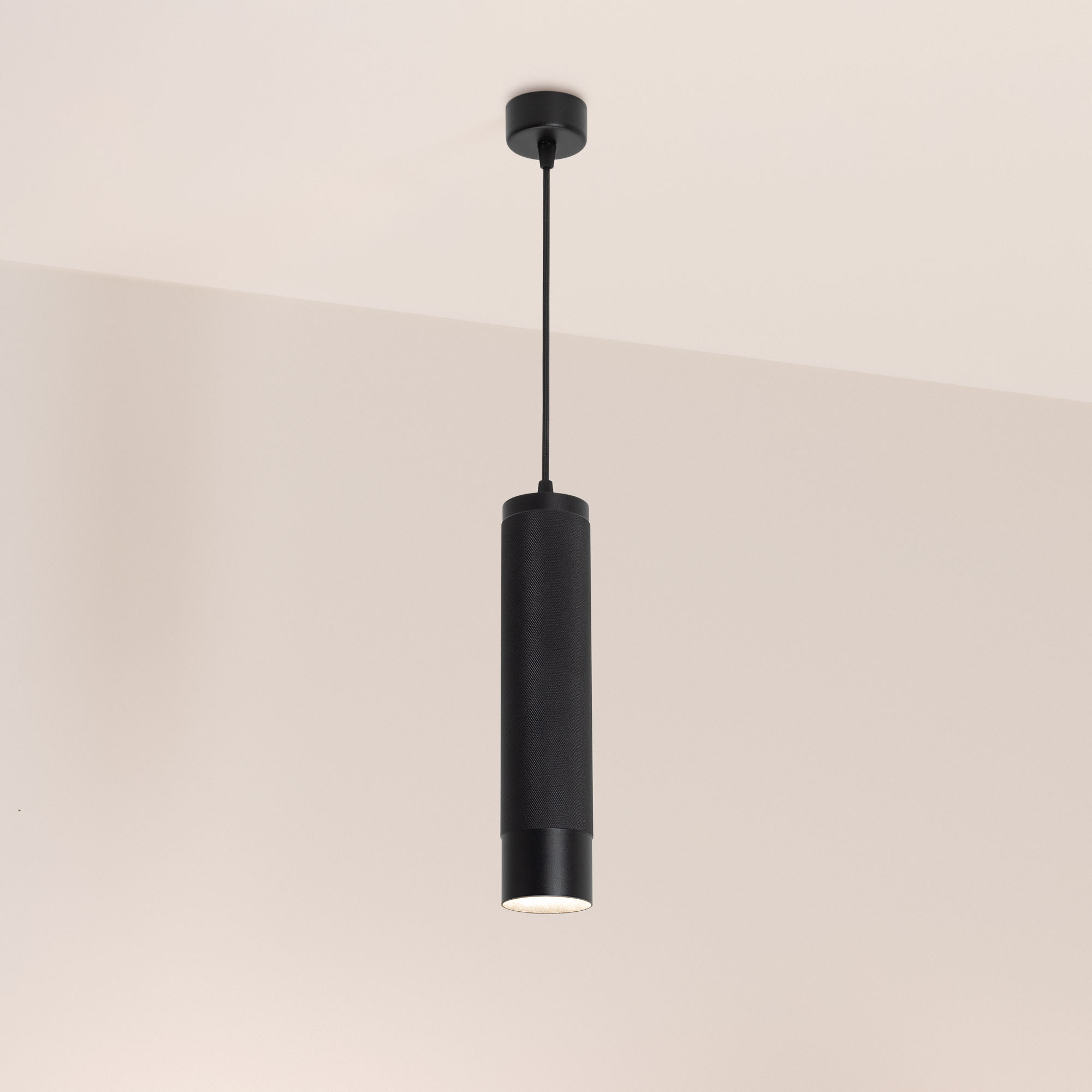 Подвесной светильник. Мощность 13 Вт, св. поток 732 лм, 57 лм/Вт, дневной 4000 K, CRI>90, угол 50°, напряжение питания 230 В. Черный круглый корпус из алюминия, рефлектор PC, степень защиты IP20. Размер: диаметр 70 мм, высота 300 мм, длина подвеса 1500 мм, размер чаши: диаметр 65 мм, высота 30 мм. Монтаж подвесной. Драйвер 24-42 В, 300 мА, пульсация <1%.
