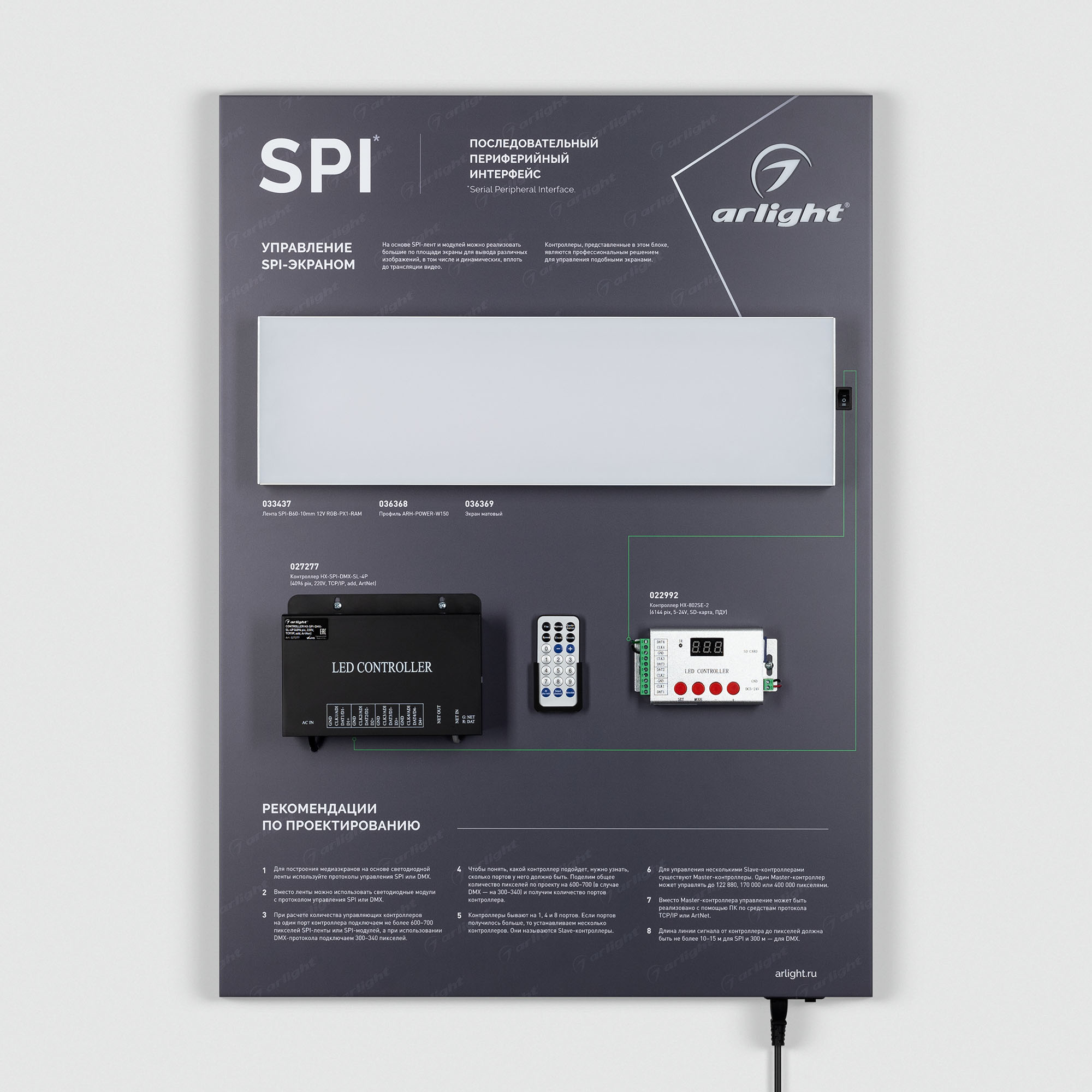 Управление освещением с помощью протокола SPI для динамического управления освещением, показано управление SPI-экраном.