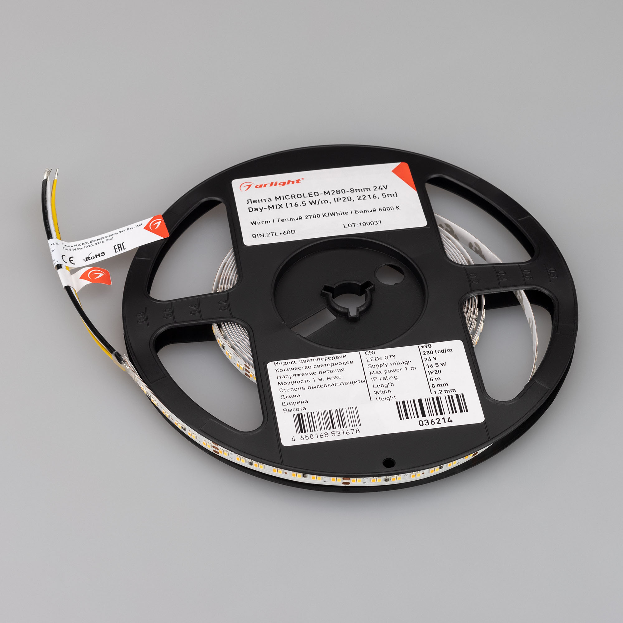 Светодиодная лента MICROLED серии M280 шириной 8 мм, мощностью 16.5 Вт/м, с изменяемым цветом белого свечения в широком диапазоне (MIX) от теплого 2700K до белого 6000K. Напряжение питания 24 В. Светодиоды SMD 2216 (280 шт/м). Высокий индекс цветопередачи CRI>90. Минимальный отрезок 50 мм (14 светодиодов). Двухканальная лента с тремя проводами для подключения, управляется любым MIX-контроллером. Применяется для создания биодинамического освещения, декоративной подсветки элементов интерьера, ниш, рекламных конструкций, витрин, рабочих зон, зон отдыха, мебели.