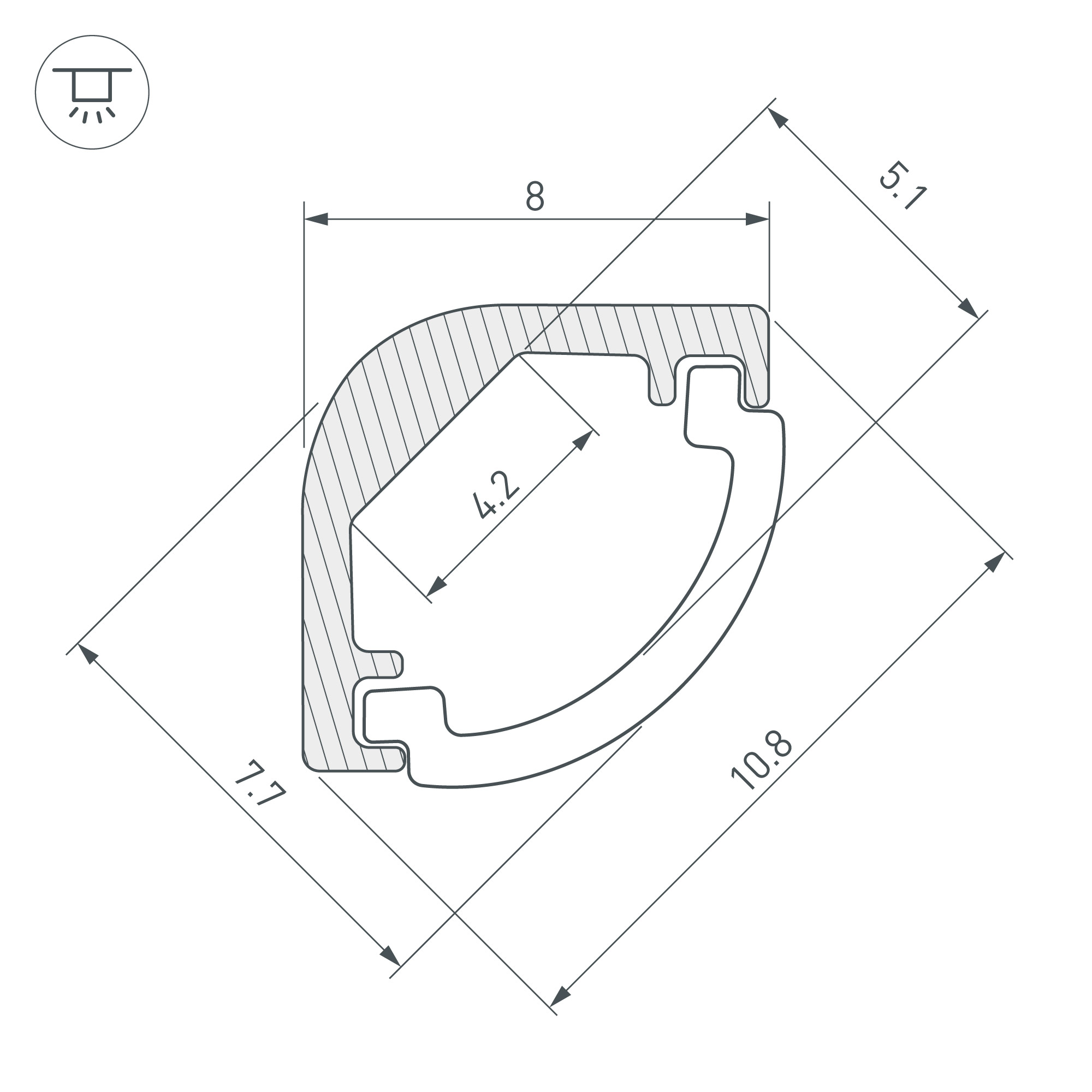Угловой профиль из анодированного алюминия для подсветки мебели, ниш и других элементов интерьера. Скругленный угол профиля позволяет достичь высокой точности установки при любых неровностях. Габаритные размеры профиля составляют 2000 мм в длину, 8 мм в ширину и 8 мм в высоту. Площадка для установки светодиодных лент позволяет использовать ленту шириной до 4,2 мм и мощностью до 12 Вт/м. Это обеспечивает гибкость в выборе светодиодных лент и создает потрясающие световые решения. Экран, заглушки и другие аксессуары не включены в комплект и приобретаются отдельно. Цена указана за 1 метр профиля. Отличное решение для создания современных световых проектов.
