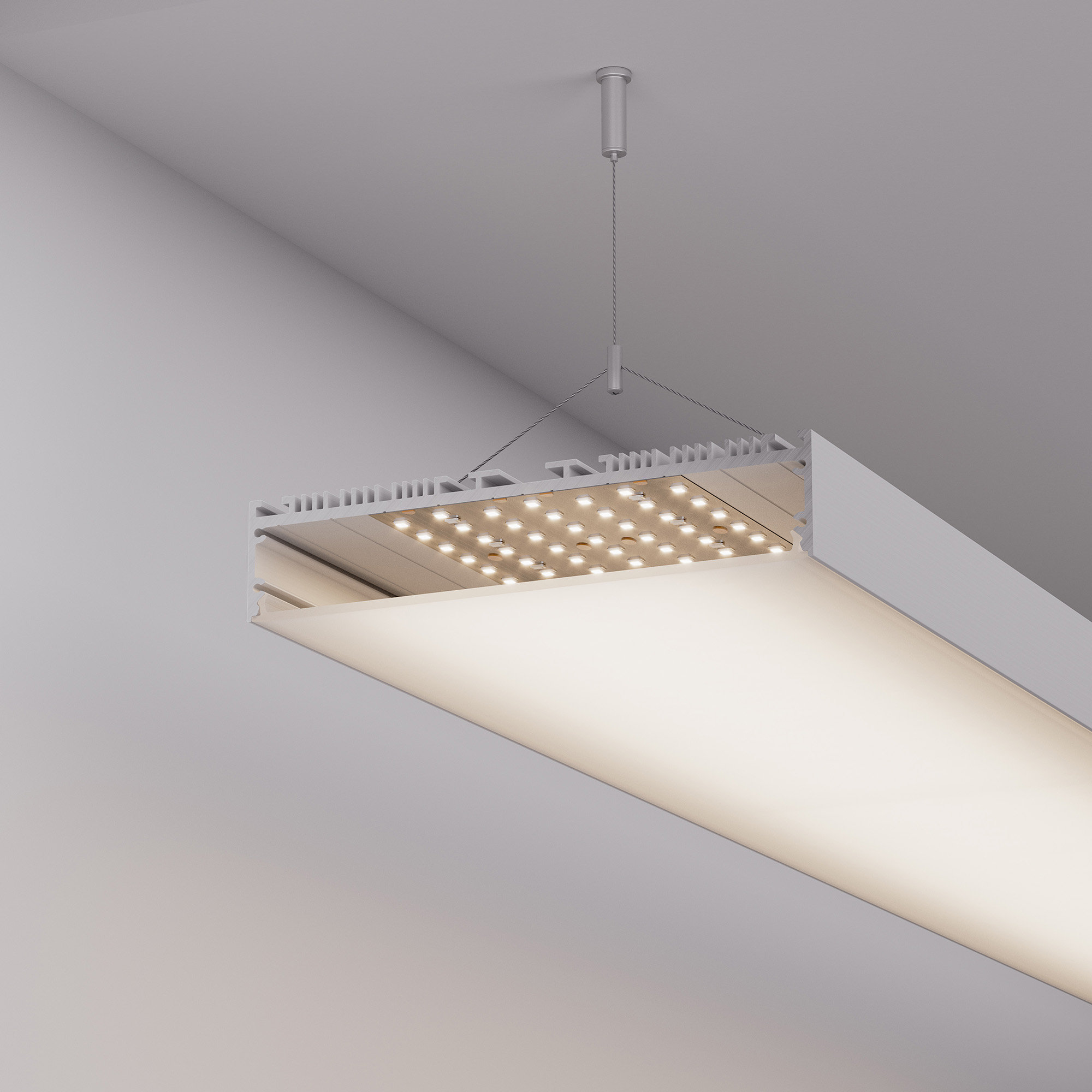 Накладной/подвесной профиль из анодированного алюминия для основного освещения и контурной подсветки. Габаритные размеры профиля составляют 2000 мм в длину, 153 мм в ширину и 32 мм в высоту. Площадка для установки светодиодных лент позволяет использовать ленту шириной до 144 мм и мощностью до 97 Вт/м. Это обеспечивает гибкость в выборе светодиодных лент и создает потрясающие световые решения. Экраны, заглушки и другие аксессуары не включены в комплект и приобретаются отдельно. Цена указана за 1 метр профиля. Отличное решение для создания современных световых проектов.