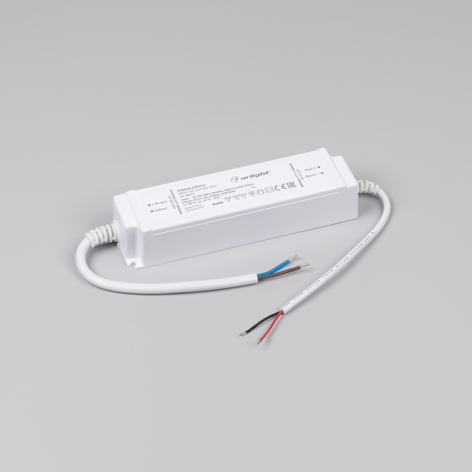 Блок питания ARPJ-SP-421400-PFC (60W, 21-42V, 1.4A) (Arlight, IP67 Пластик, 5 лет)