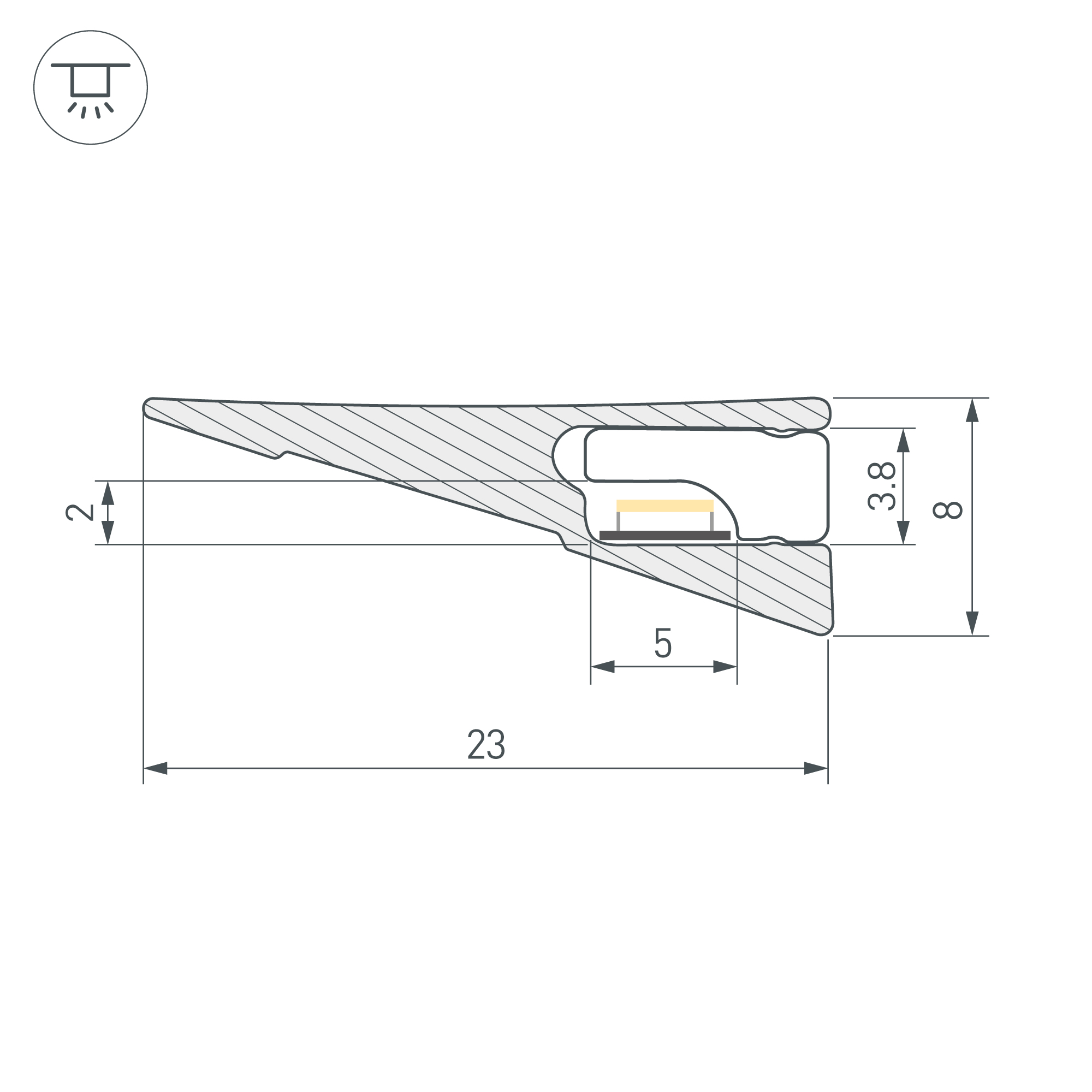 Накладной профиль серо-оливкового цвета из анодированного алюминия для подсветки мебели, полок и других элементов интерьера. Габаритные размеры профиля составляют 2000 мм в длину, 23 мм в ширину и 8 мм в высоту. Площадка для установки светодиодных лент позволяет использовать ленту шириной до 5 мм и мощностью до 14 Вт/м. Это обеспечивает гибкость в выборе светодиодных лент и создает потрясающие световые решения.
