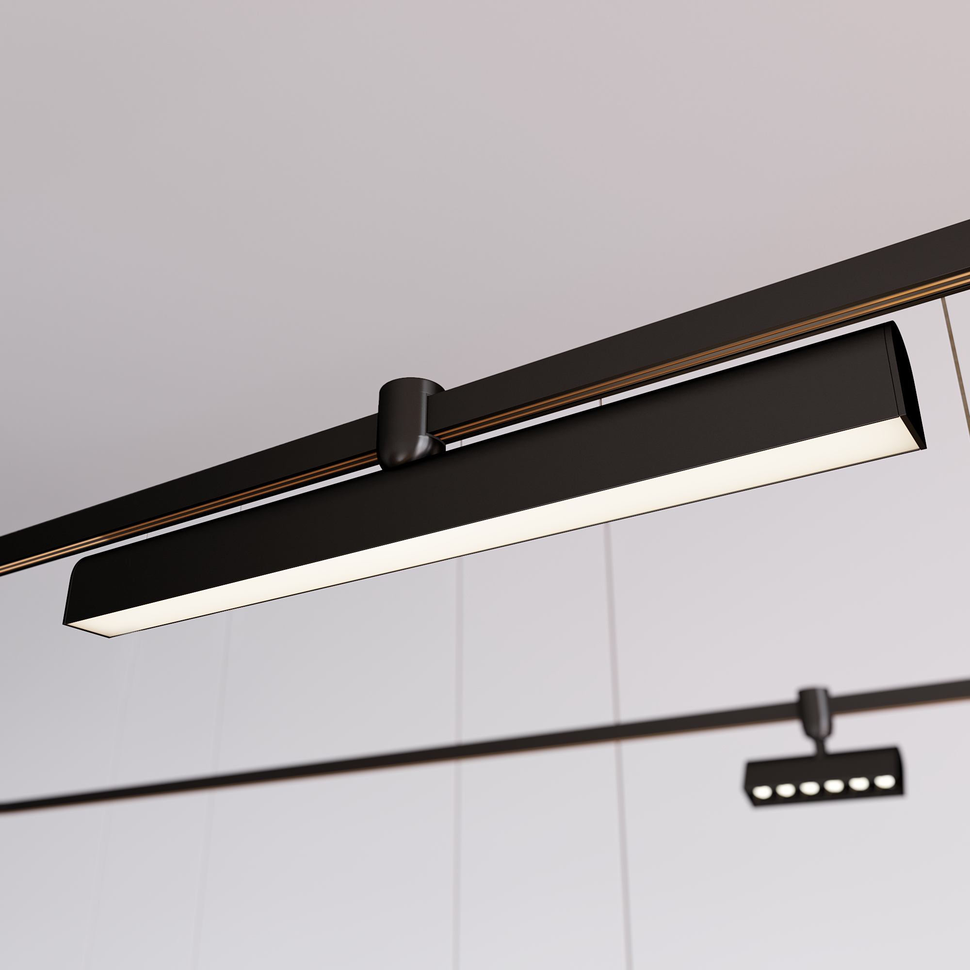 Светильник APRIORI-FLAT мощностью 15 Вт для треков APRIORI шириной 17 мм. Дневной цвет свечения, световой поток 600 лм, световая эффективность 40 лм/Вт и высокий индекс цветопередачи обеспечивают качественное освещение. Линейный корпус из алюминия, окрашенный в черный цвет гармонично вписывается в различные типы интерьеров. Светильник легко монтируется на шинопровод с помощью специального механизма. Есть возможность вертикальной установки светильника. Угол излучения 120 градусов подойдет для организации общего освещения, а матовый экран создает рассеянное свечение. Имеет защиту от пыли IP20 для применения внутри помещений, где нет контакта с водой или другими жидкостями. Минимальный коэффициент пульсации гарантирует зрительный комфорт без мерцания. Управление яркостью осуществляется с помощью диммера по ШИМ (PWM) или возможно не адресное управление при использовании драйвера Dali, 0-10V или TRIAC. Драйвер для подключения 48В поставляется отдельно.