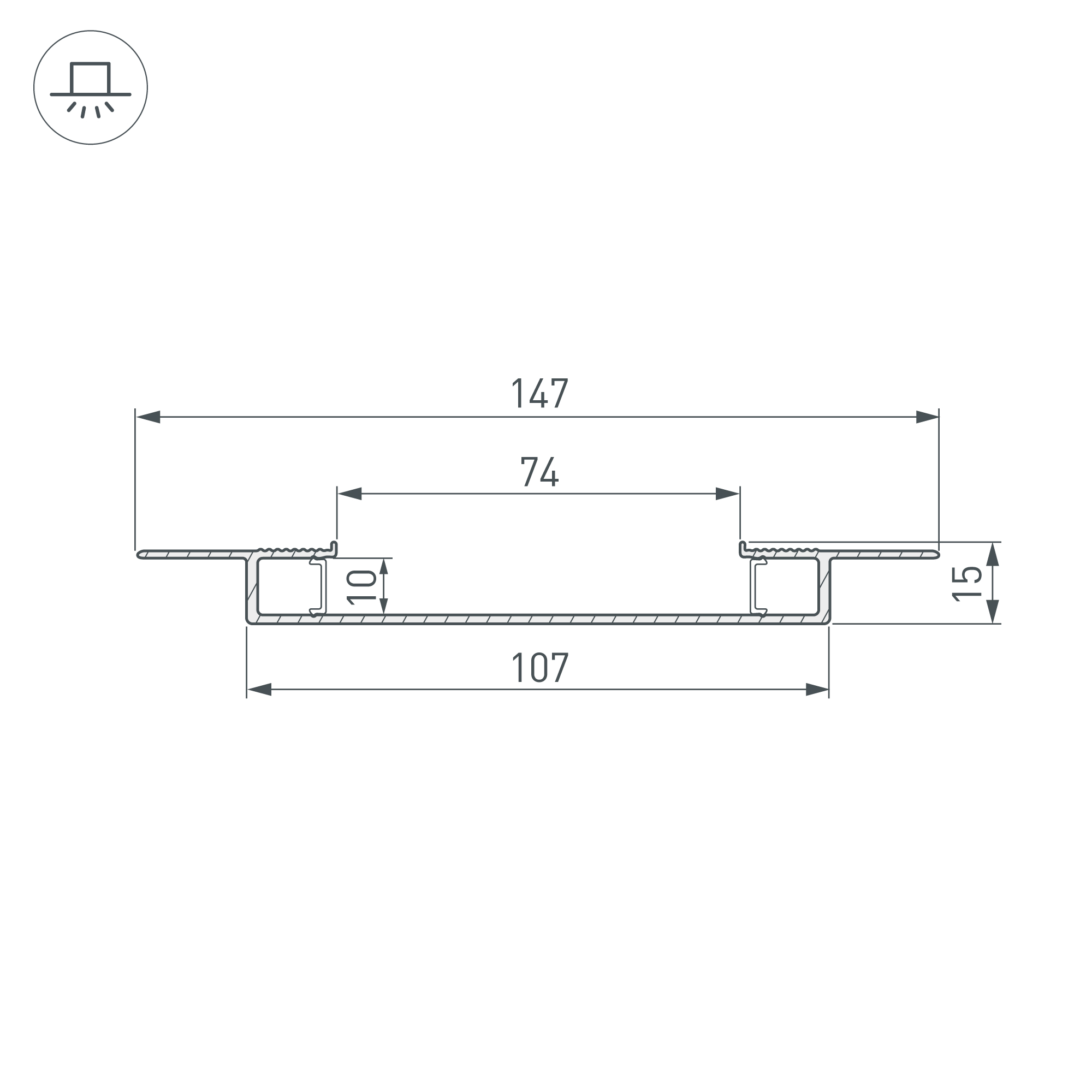 Габаритные размеры профиля составляют 2000 мм в длину, 147 мм в ширину и 15 мм в высоту. Площадки для установки светодиодных лент позволяют использовать ленты шириной до 10 мм и мощностью до 29 Вт/м каждая. Это обеспечивает гибкость в выборе светодиодных лент и создает потрясающие световые решения.