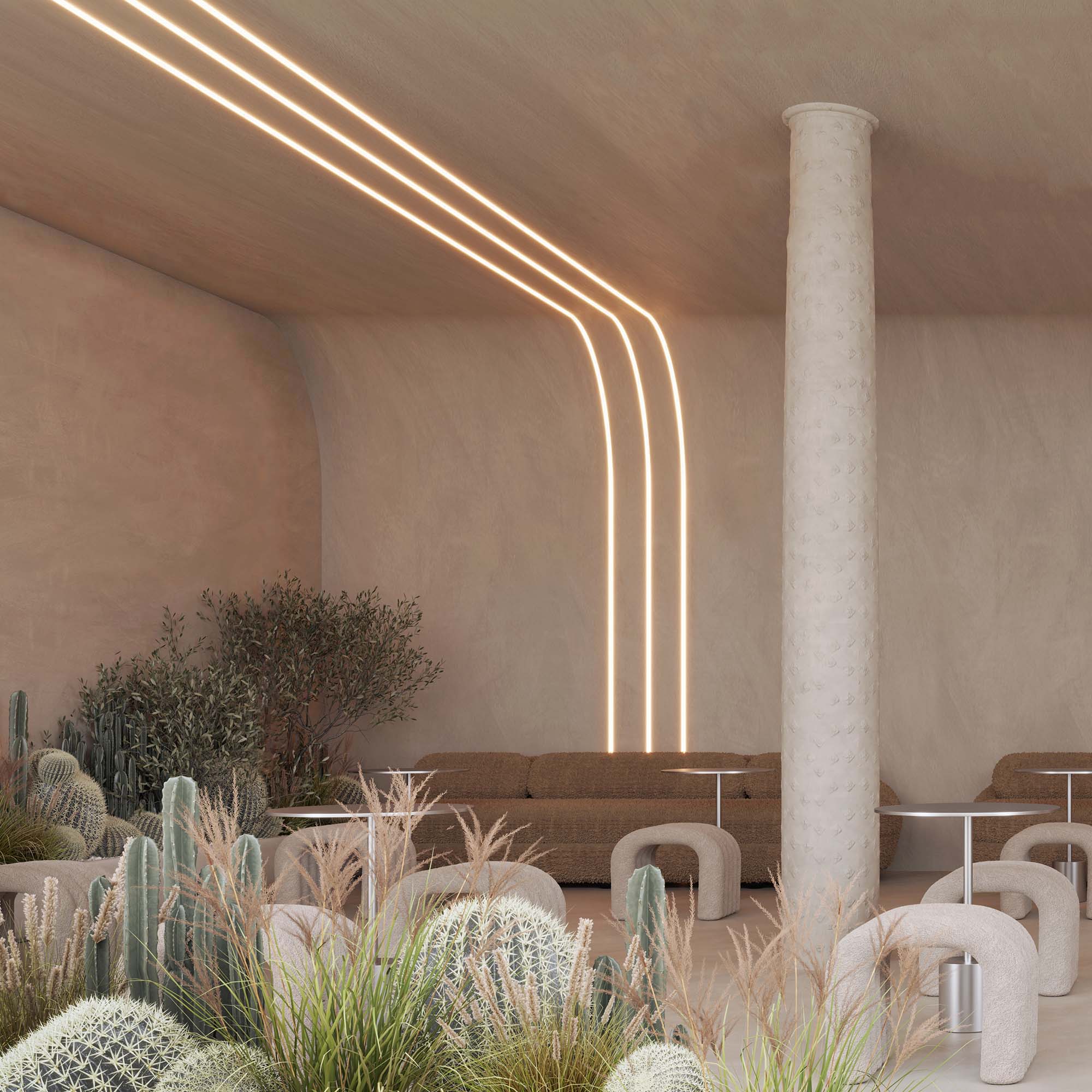 Совместим с прямым алюминиевым профилем FANTOM-W12 и гибким FANTOM-BENT-W12-SIDE. Сочетание разных видов профиля поможет подчеркнуть как прямые, так и изогнутые контуры интерьера, а также создать круги и волнообразные линии, переходящие с потолка на стены.