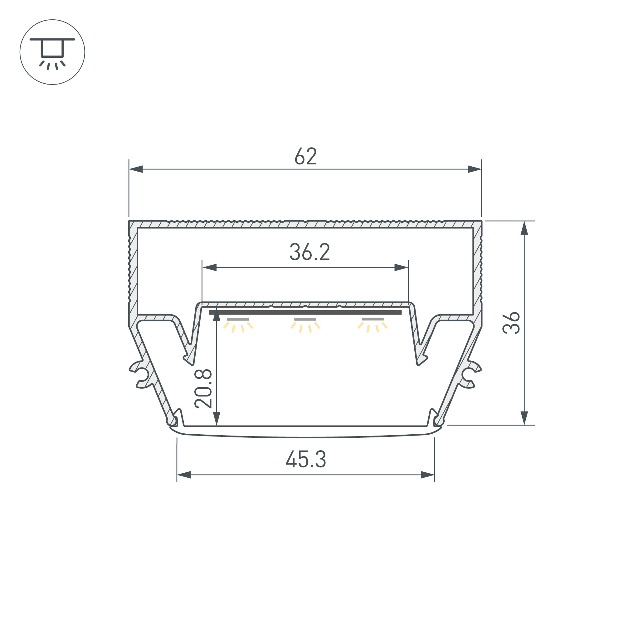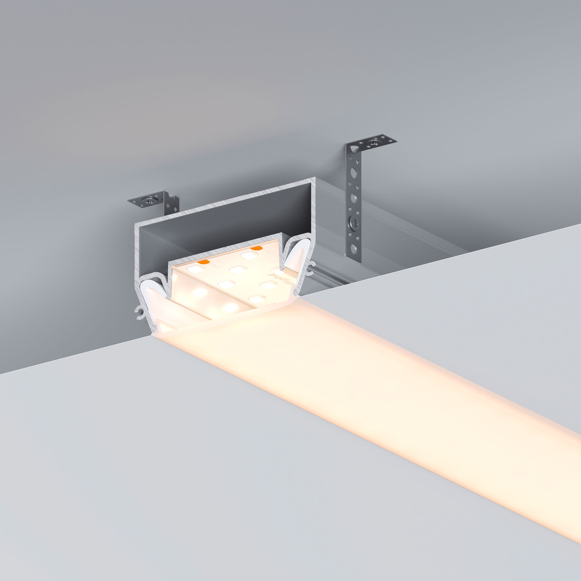 Встраиваемый алюминиевый профиль (центральная линия) для дизайнерских решений «линии света» в натяжных потолках. Решение 2-в-1: служит каркасом для крепления натяжного потолка и профилем для установки светодиодной ленты. Габаритные размеры профиля составляют 2000 мм в длину, 62 мм в ширину и 36 мм в высоту. Площадка для установки светодиодных лент позволяет использовать ленту шириной до 36,2 мм и мощностью до 60 Вт/м. Это обеспечивает гибкость в выборе светодиодных лент и создает потрясающие световые решения. Экран, заглушки и другие аксессуары не включены в комплект и приобретаются отдельно. Цена указана за 1 метр профиля. Отличное решение для создания современных световых проектов.